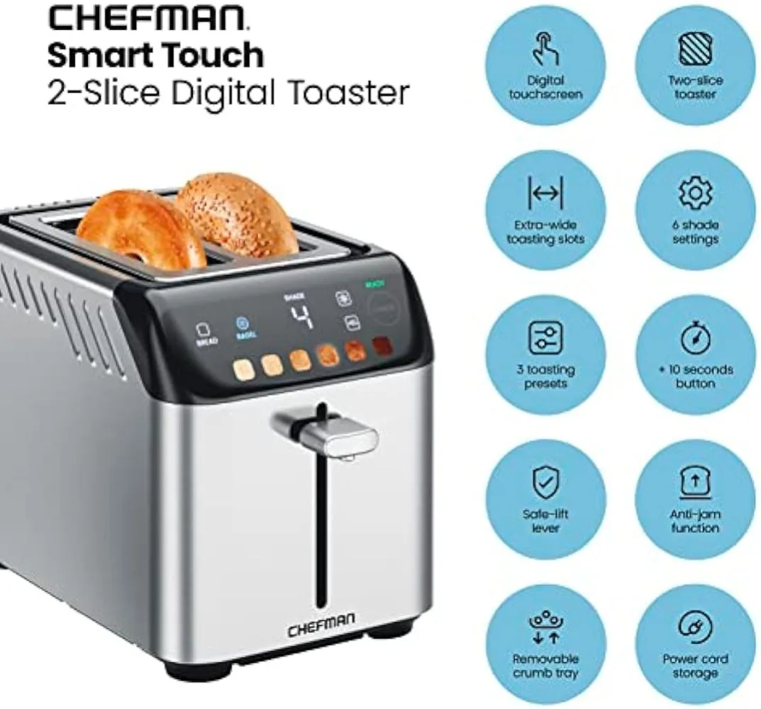 BXyqkqmLHere you can buy Chefman Smart Touch 2 Slice Digital Toaster, 6 Shade Settings, Stainless Steel Toaster 2 Slice with Extra-Wide Slots with free delivery to your post office.