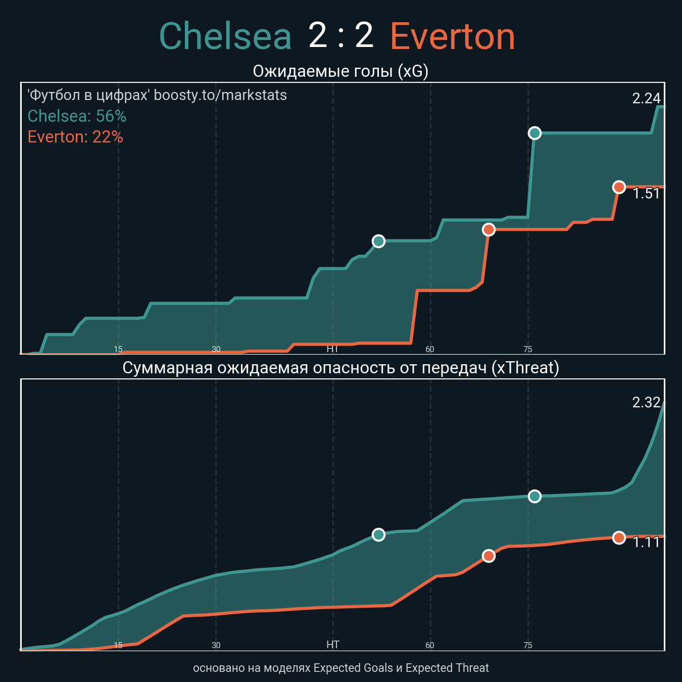 Очки xThreat с игры: