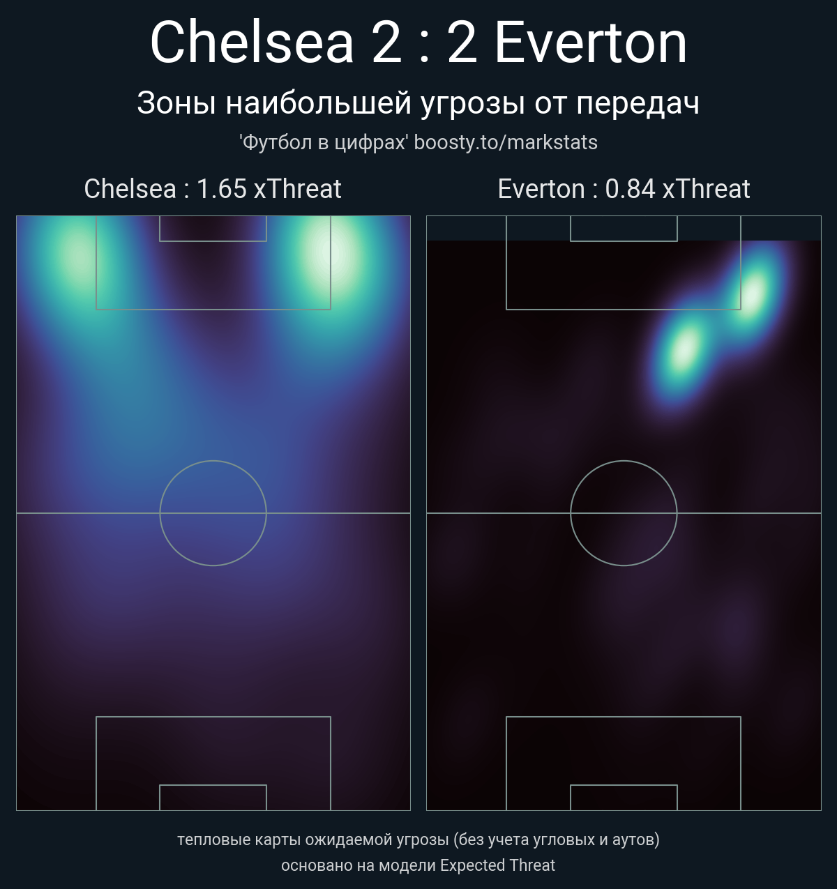 xThreat без учета угловых: 1.65 - 0.84