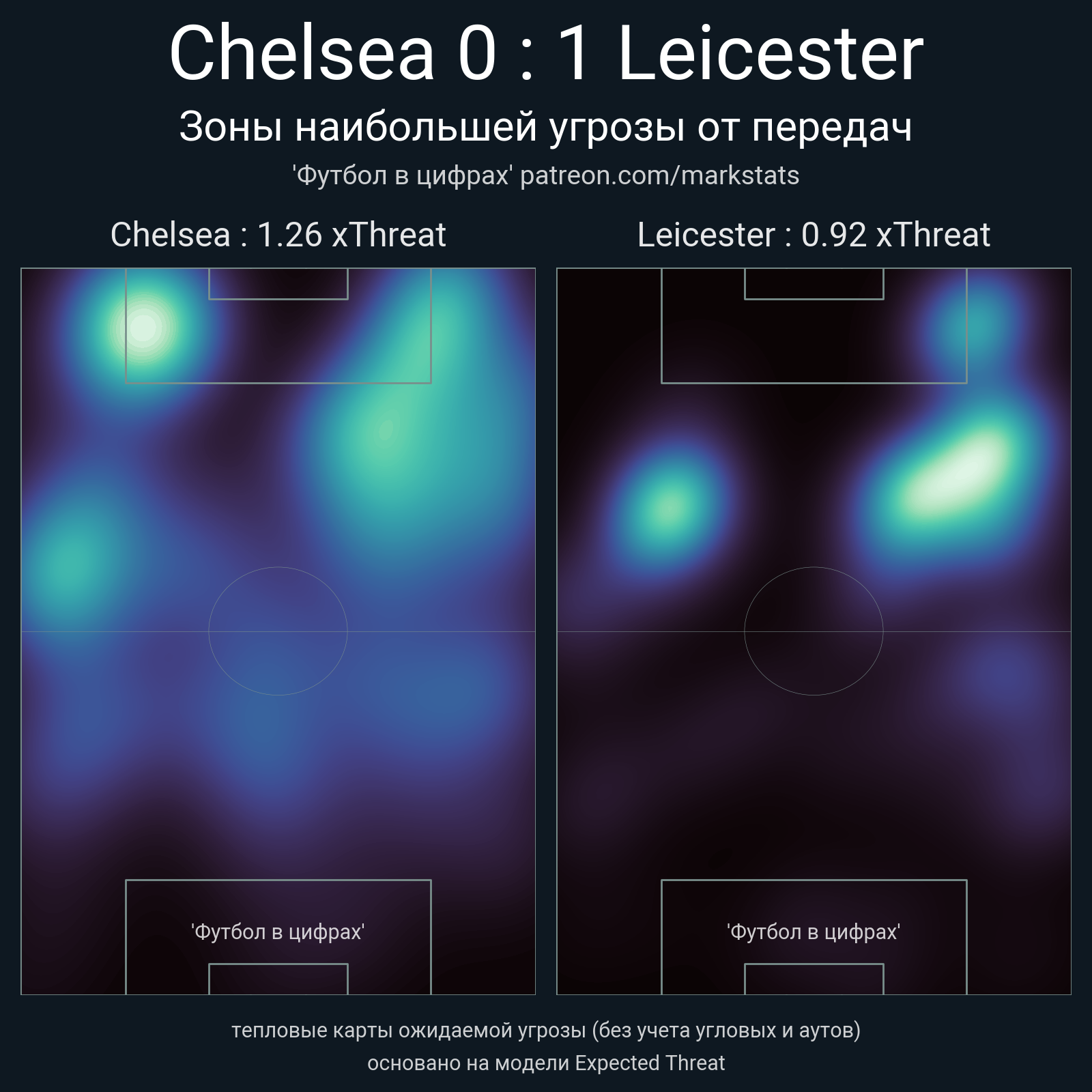 ▪ xThreat без учета угловых: 1.26 - 0.92