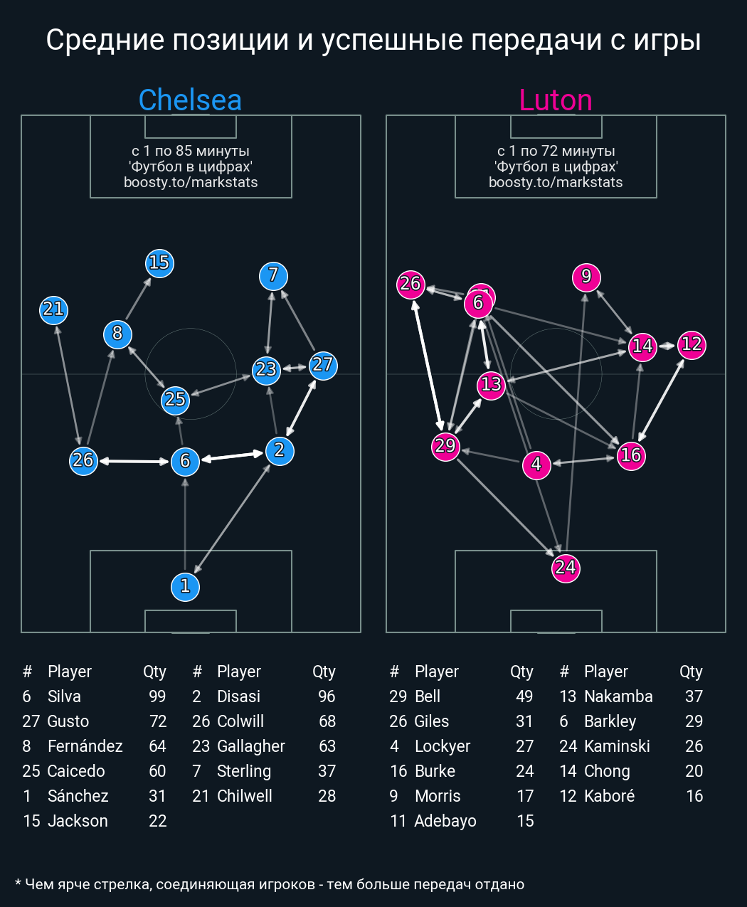 60 успешных передач из 68 попыток (2 под удар, 11 с продвижением, 13 на трети соперника)