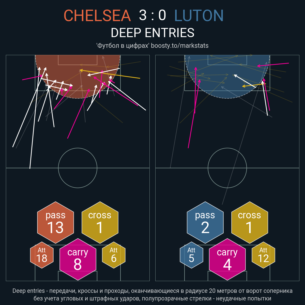 20 успешных передач из 23 попыток (2 под удар, 2 с продвижением, 11 на трети соперника)