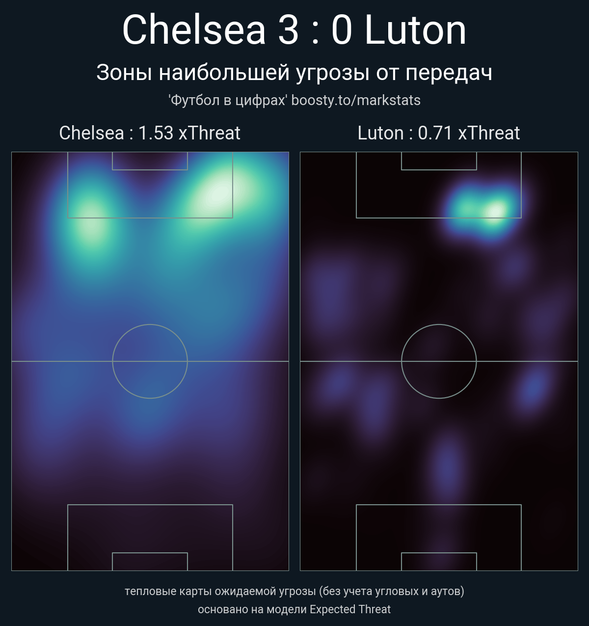 xThreat без учета угловых: 1.53 - 0.71