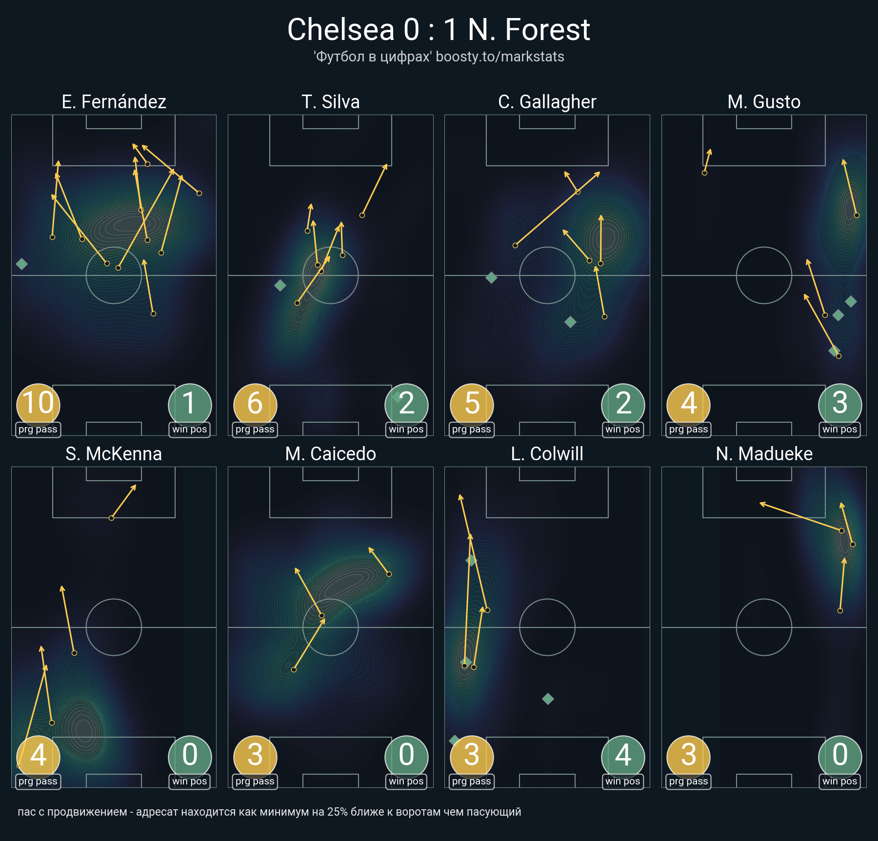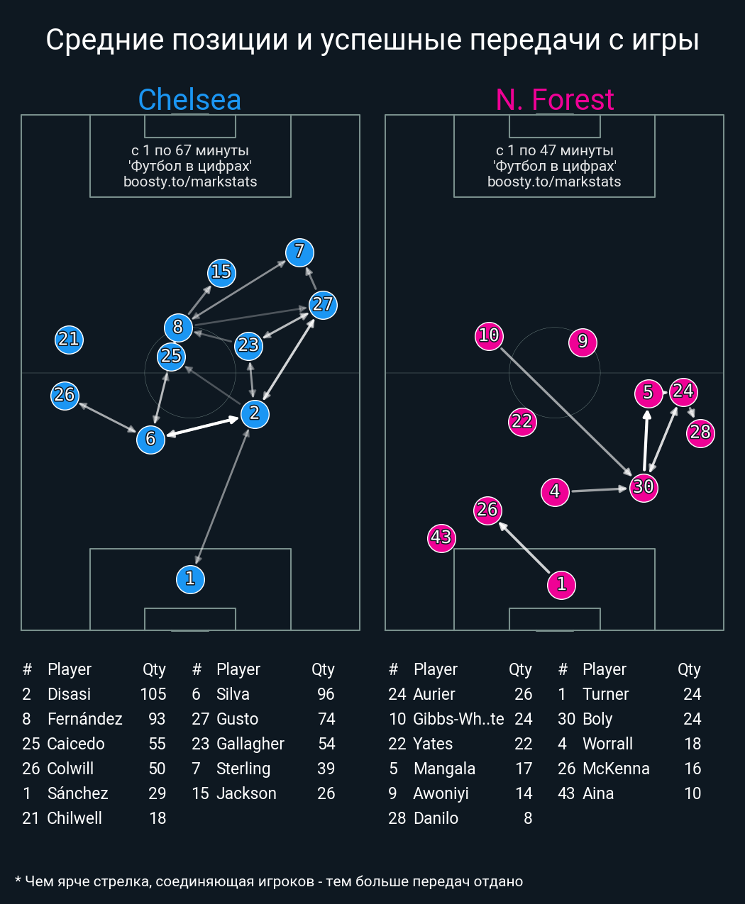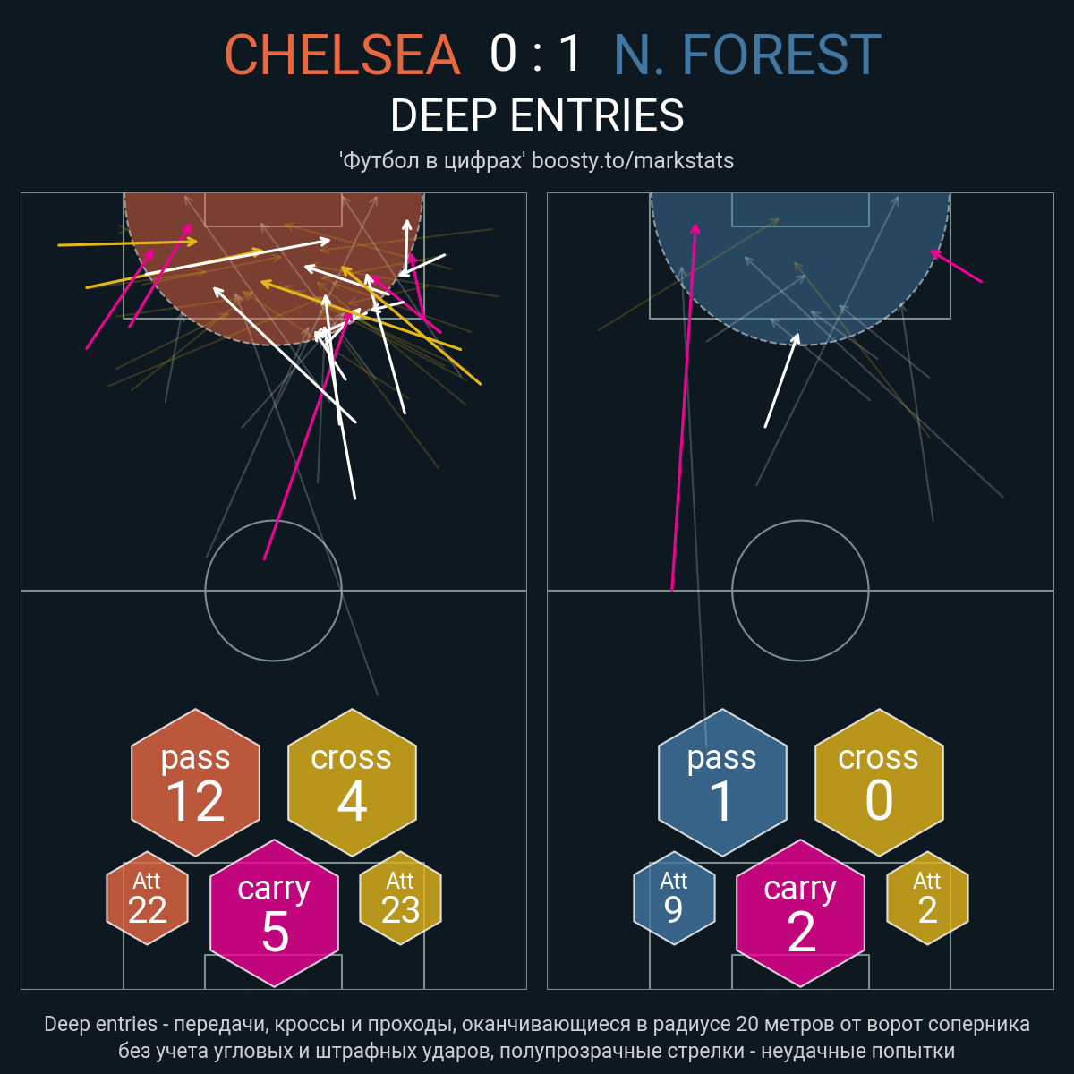 11 успешных передач из 24 попыток (1 под удар, 3 с продвижением, 6 на трети соперника)