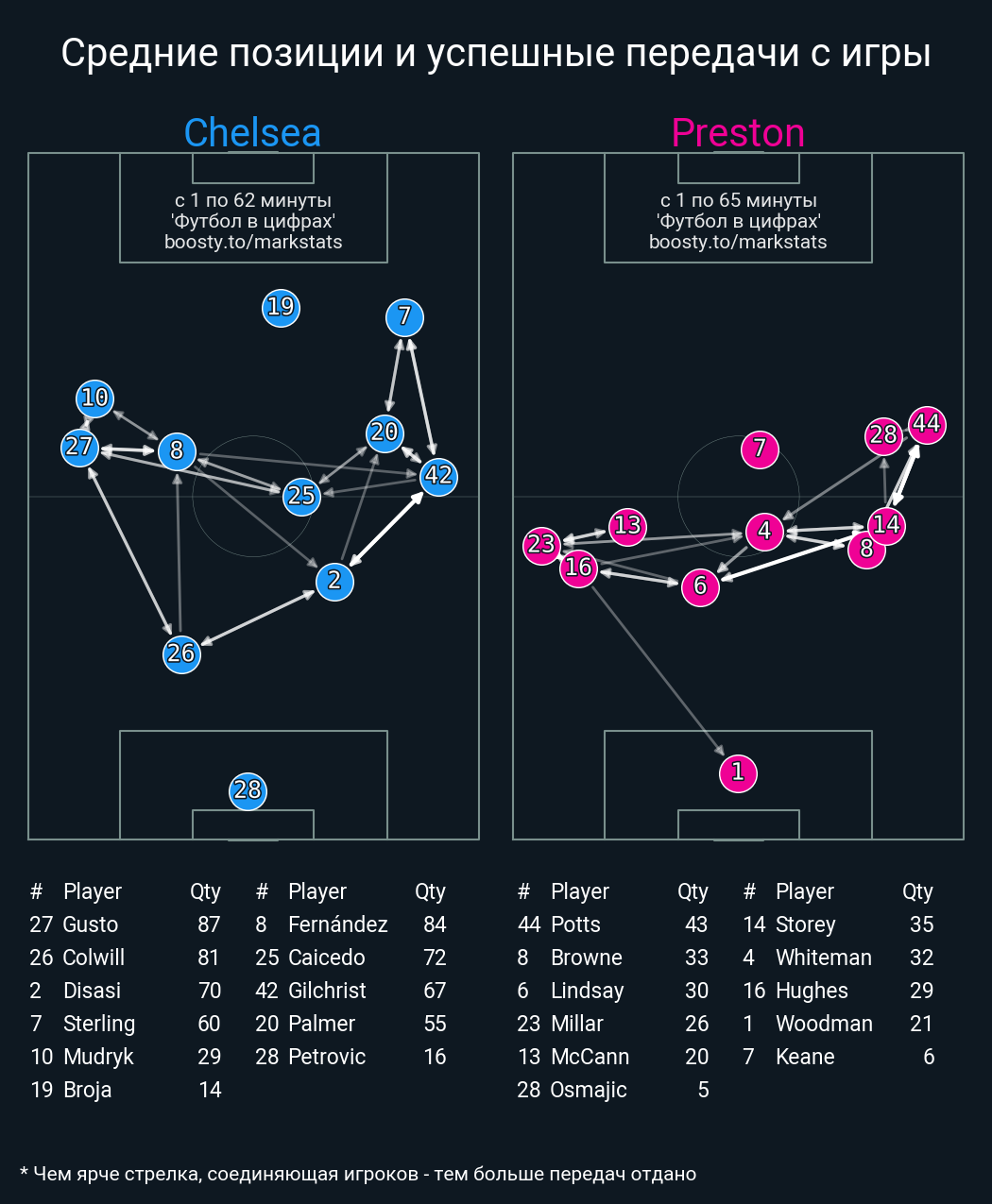 70 успешных передач из 88 попыток (3 под удар, 4 с продвижением, 17 на трети соперника)