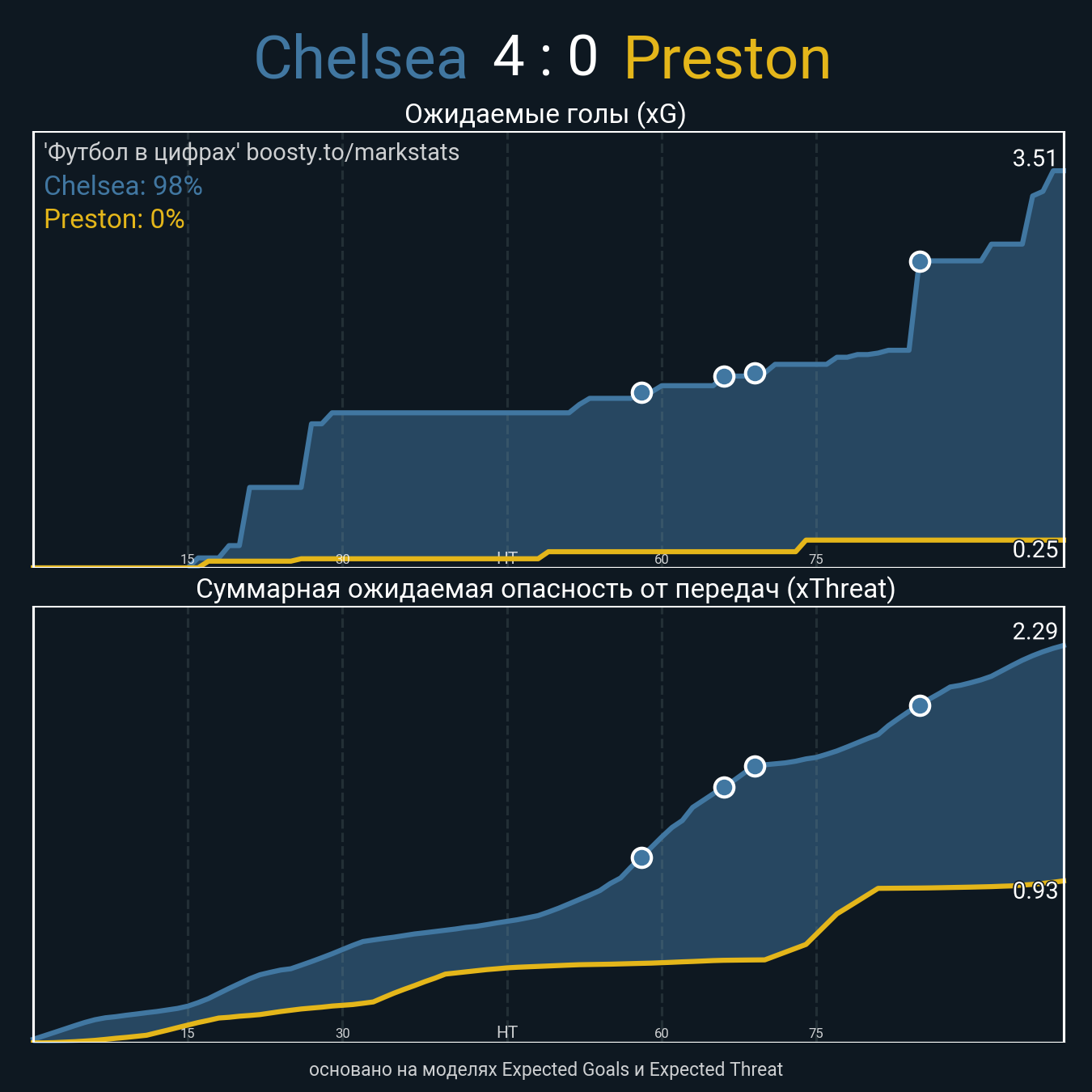 Ожидаемые голы (NPxG): 3.51 - 0.25