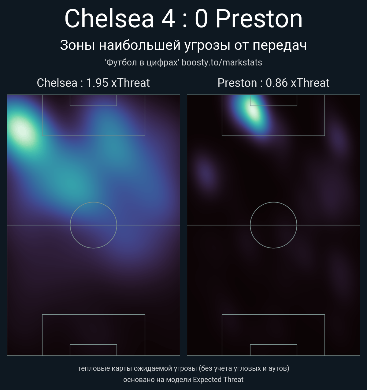 xThreat без учета угловых: 1.95 - 0.86