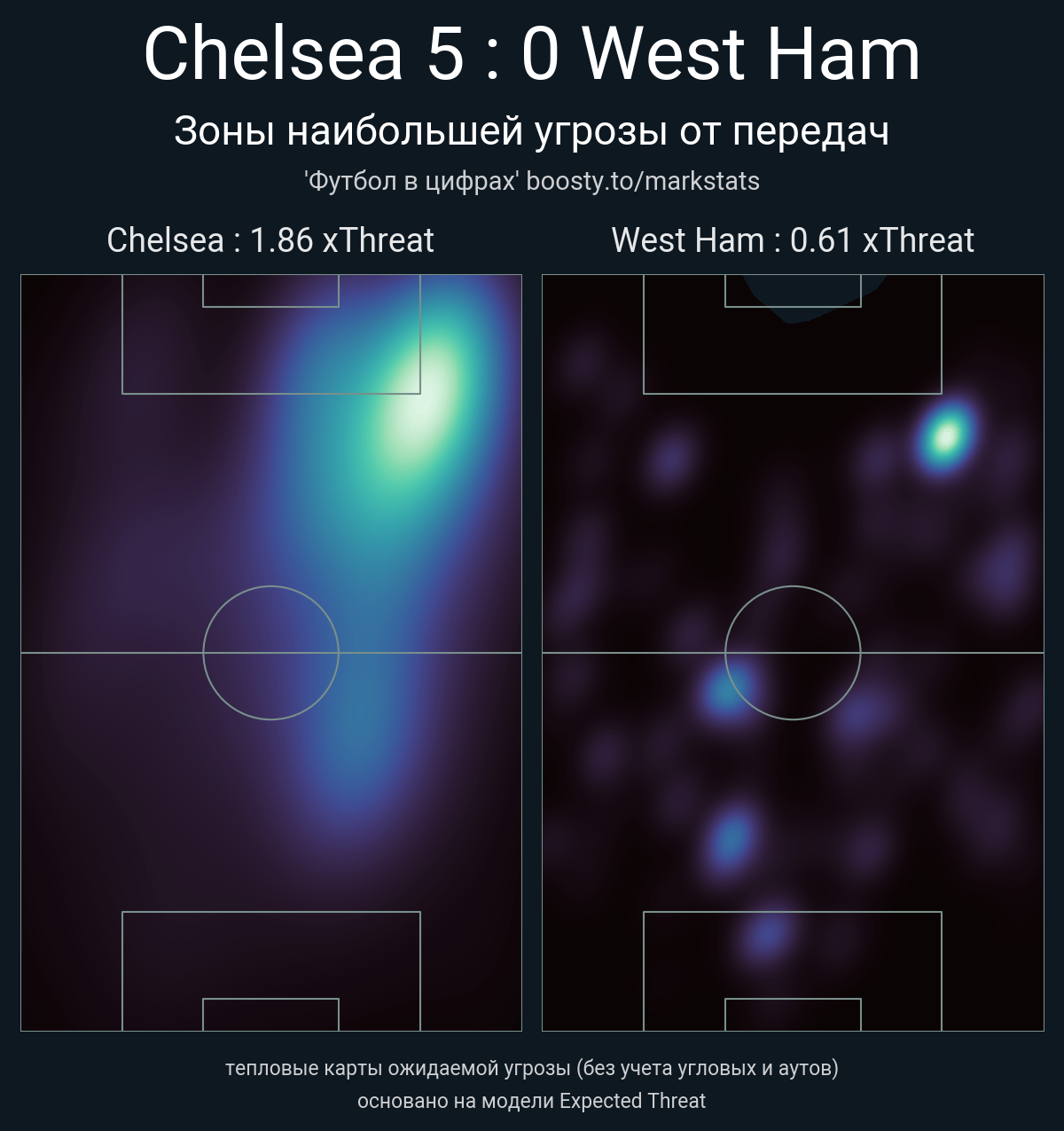 xThreat без учета угловых: 1.86 - 0.61