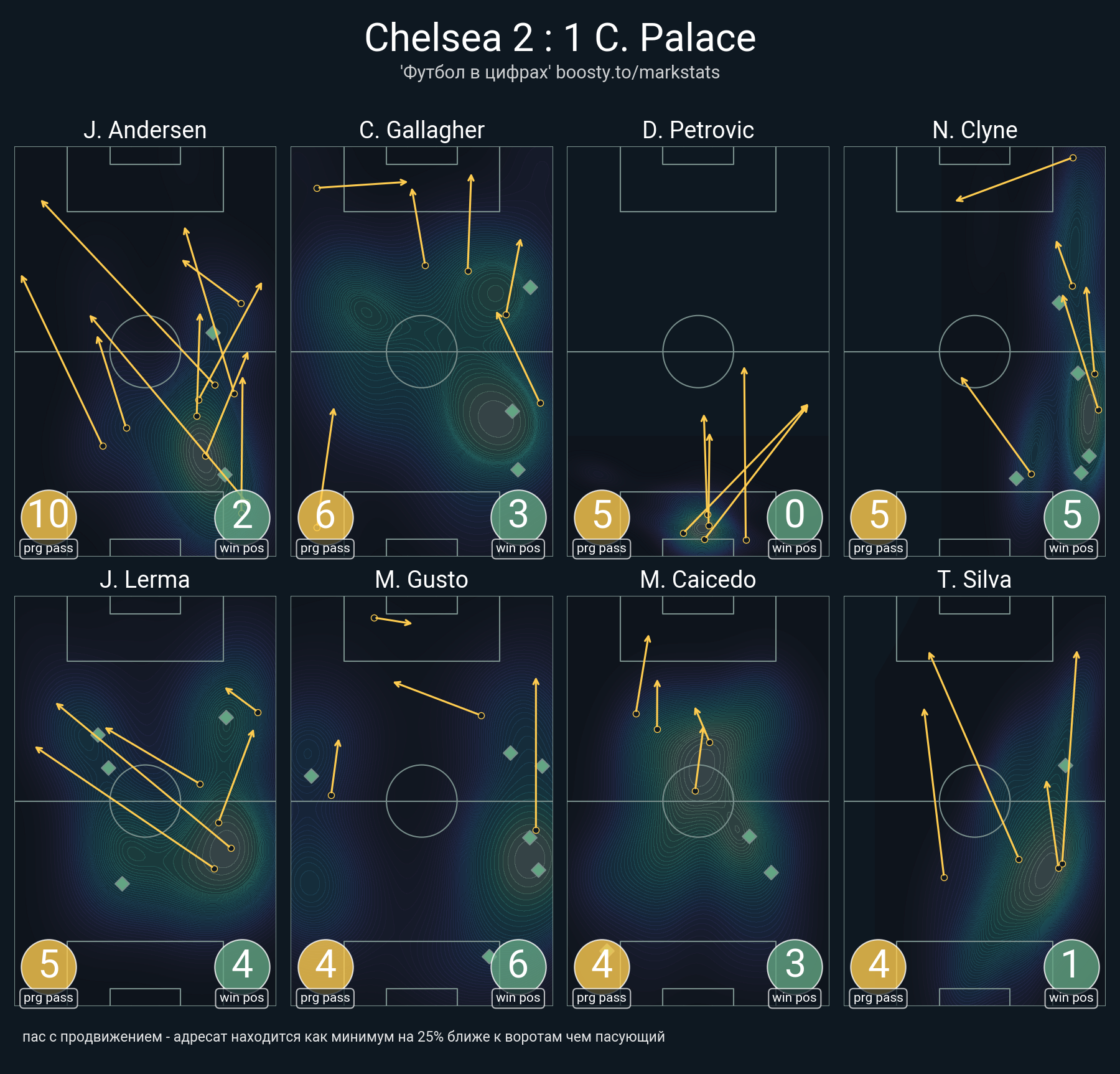 25 успешных передач из 34 попыток (2 под удар, 3 с продвижением, 11 на трети соперника)