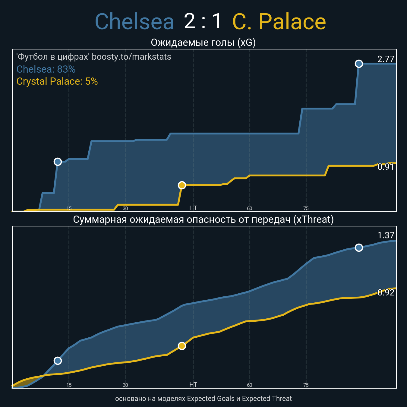 Ожидаемые голы (NPxG): 2.01 - 0.91