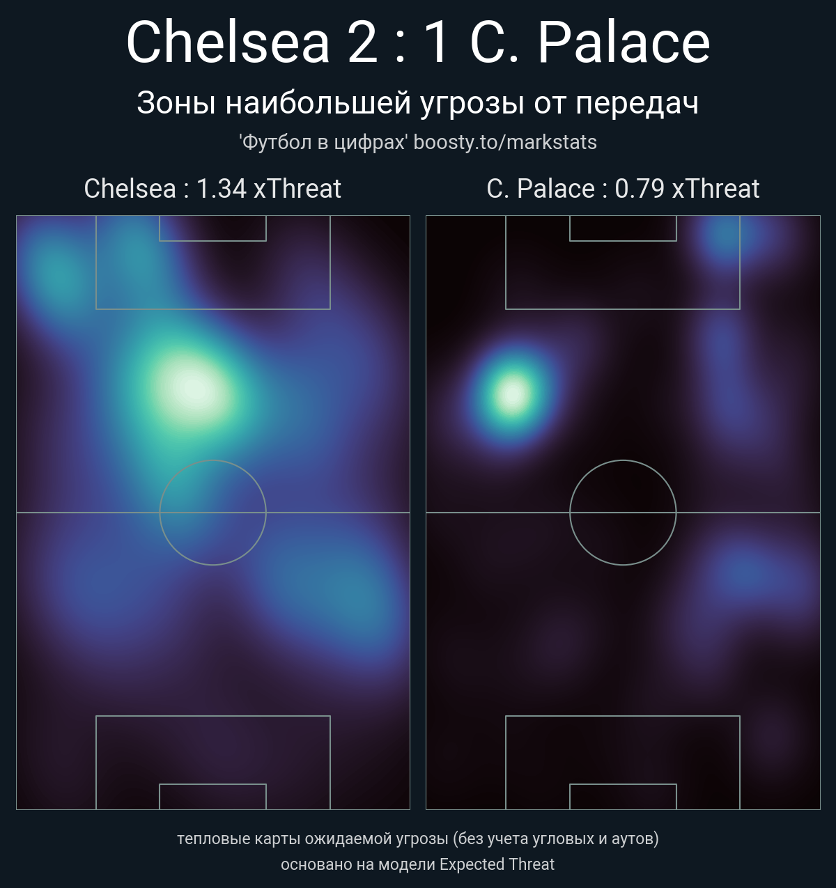 xThreat без учета угловых: 1.34 - 0.79