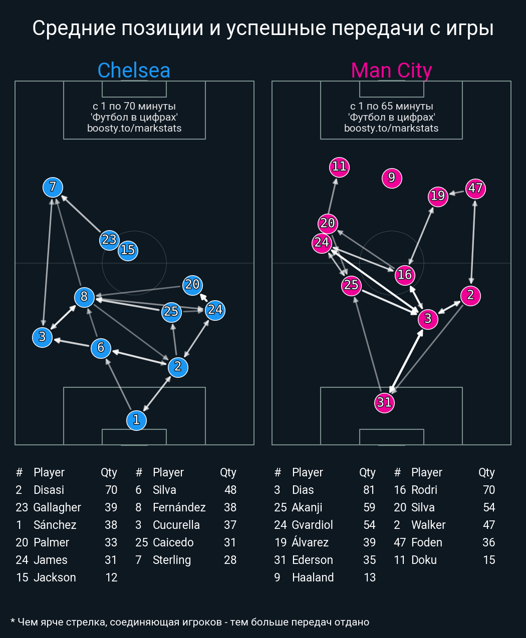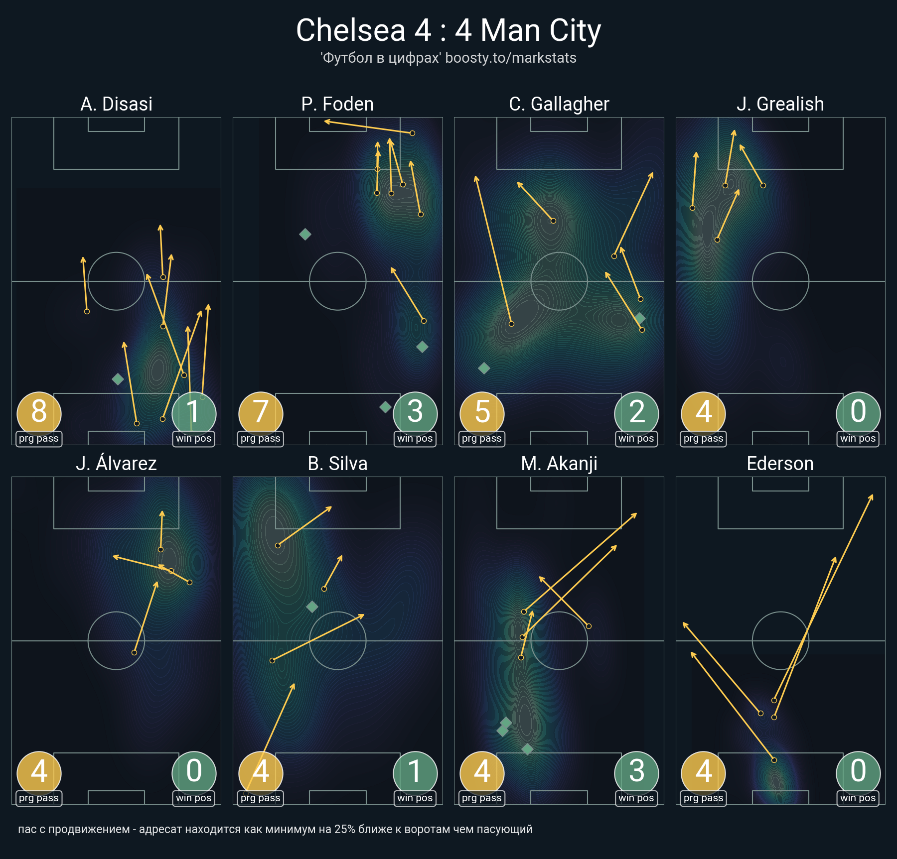 73 успешных передач из 81 попыток (3 с продвижением, 3 на трети соперника)