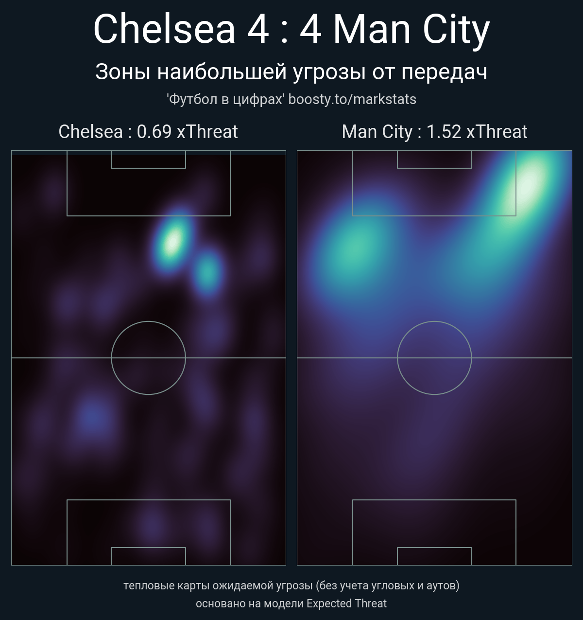 xThreat без учета угловых: 0.69 - 1.52