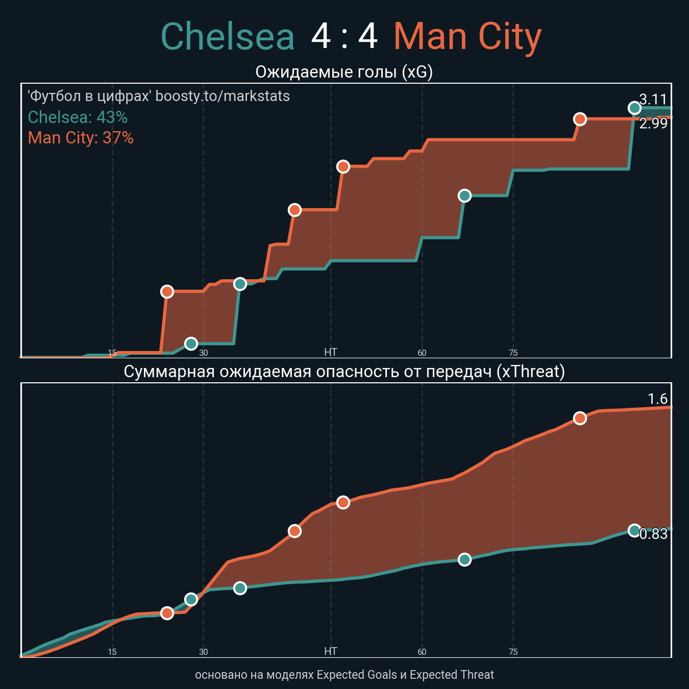 Очки xThreat с игры: