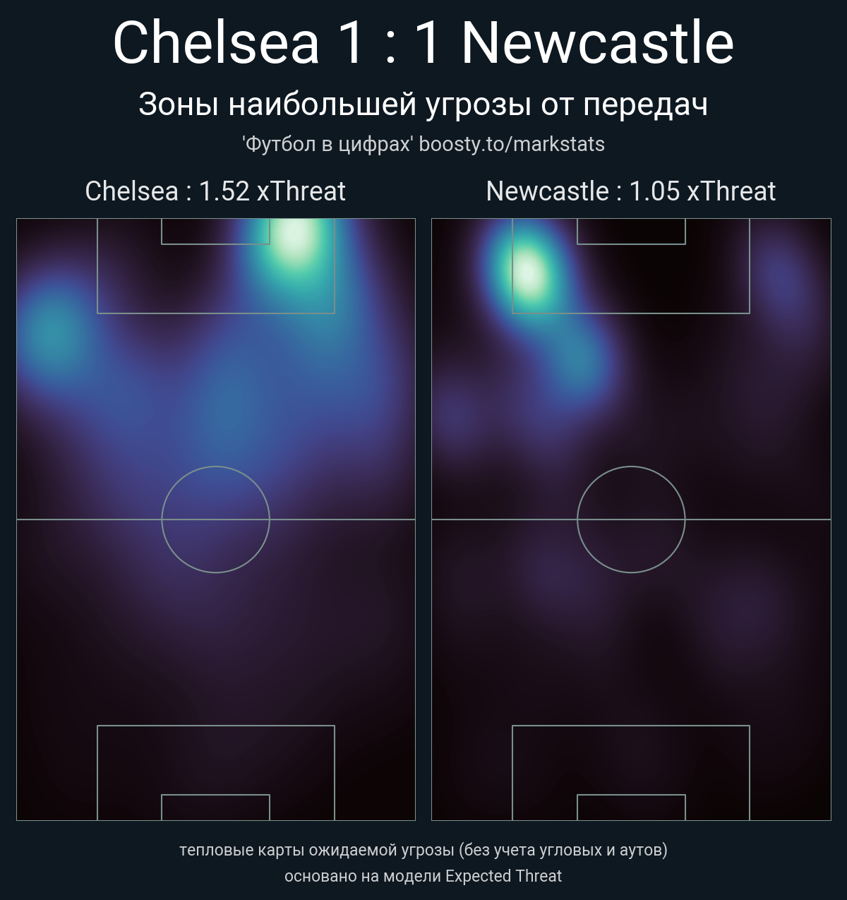 xThreat без учета угловых: 1.52 - 1.05