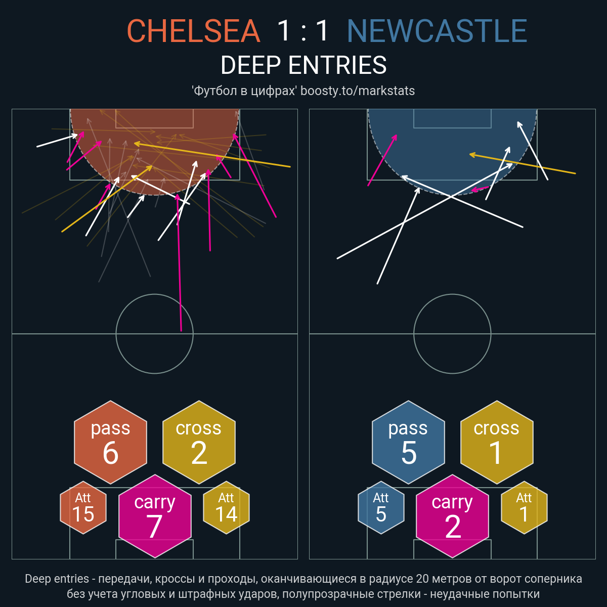 39 успешных передач из 46 попыток (1 под удар, 5 с продвижением, 19 на трети соперника)