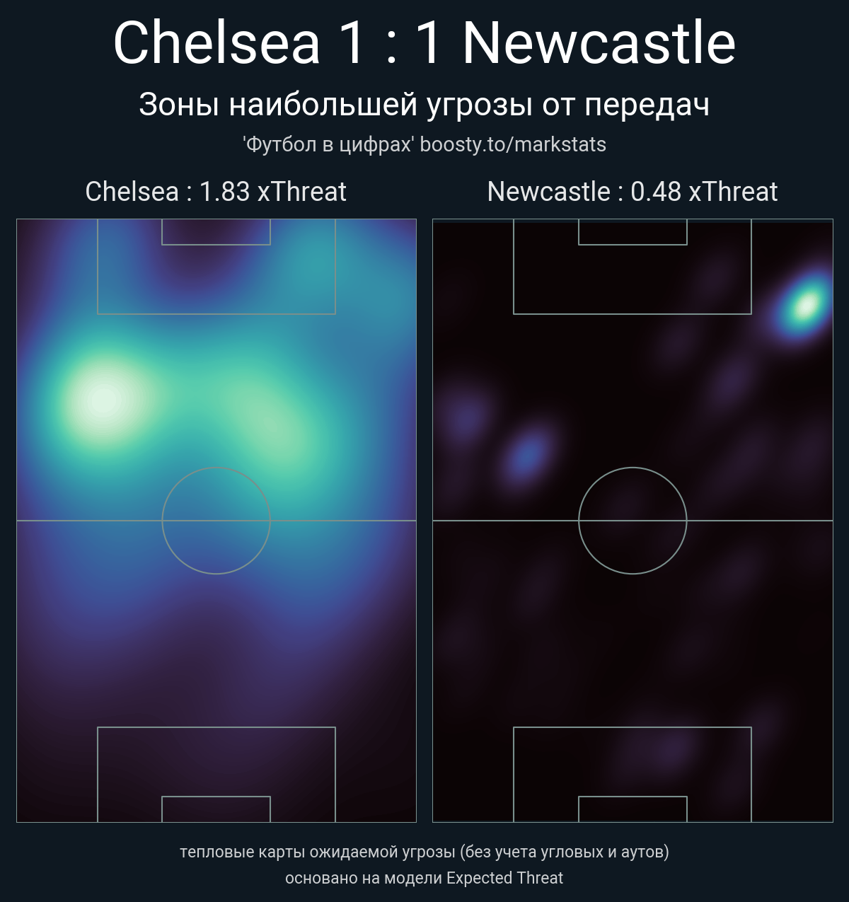 xThreat без учета угловых: 1.83 - 0.48
