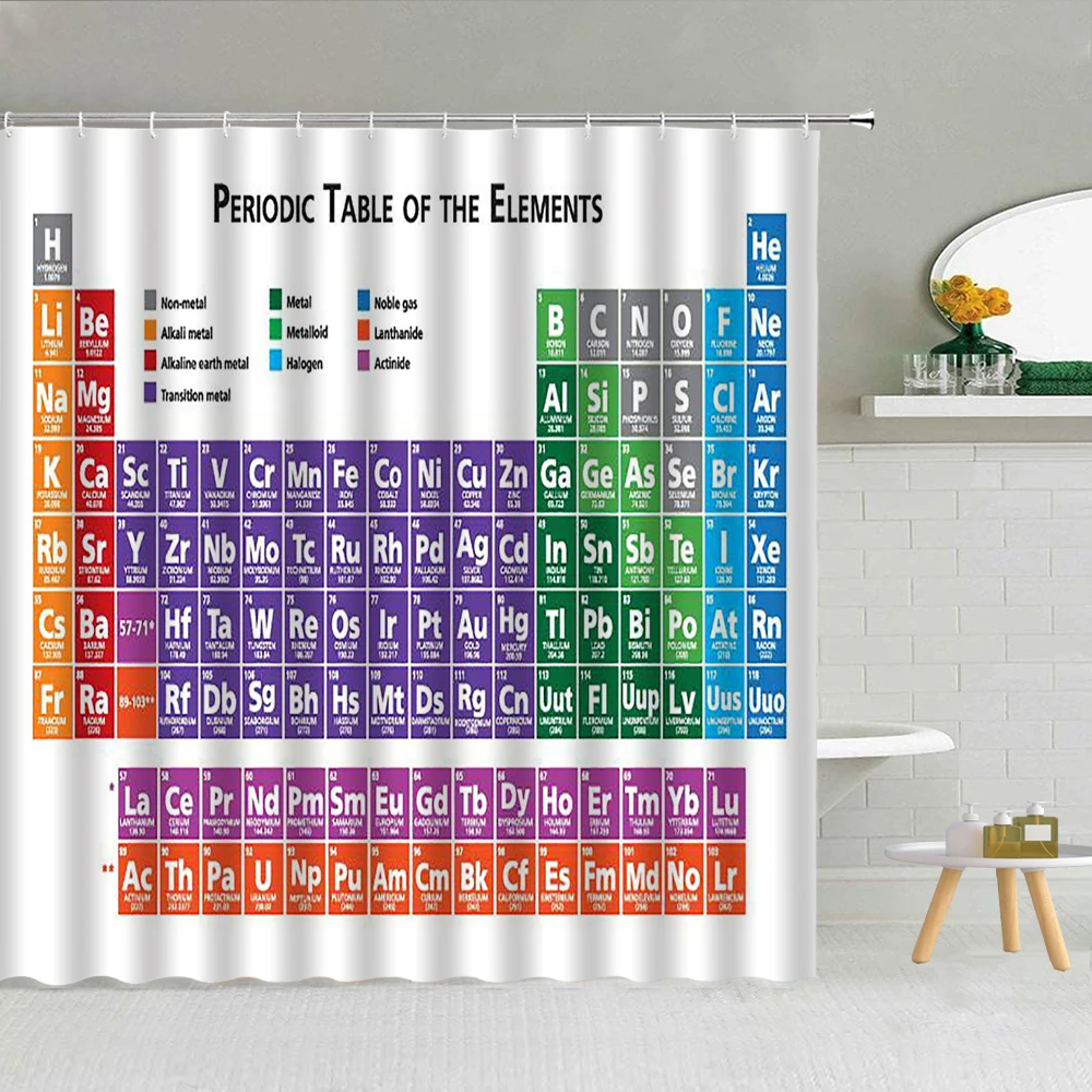 "Chemistry Creative Pattern Shower Curtain Periodic Table of Elements Polyester Fabric Bathroom Supplies Decor With Hook Washable" * Buy Now Just For 8$