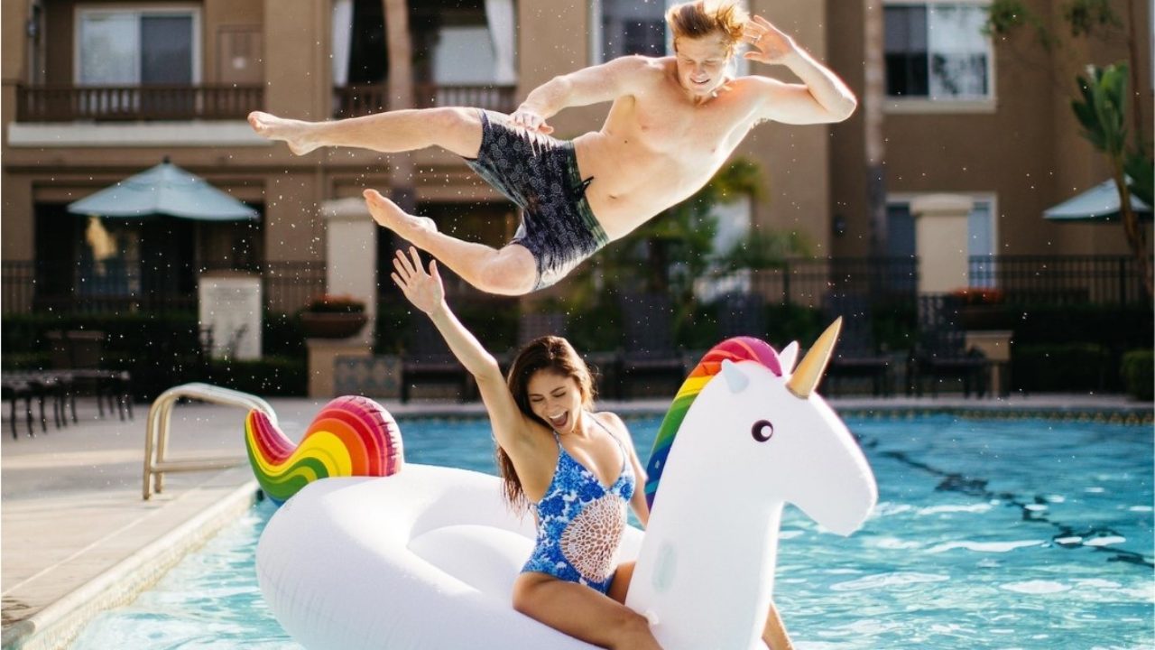 Chevaucher au bord de la piscine