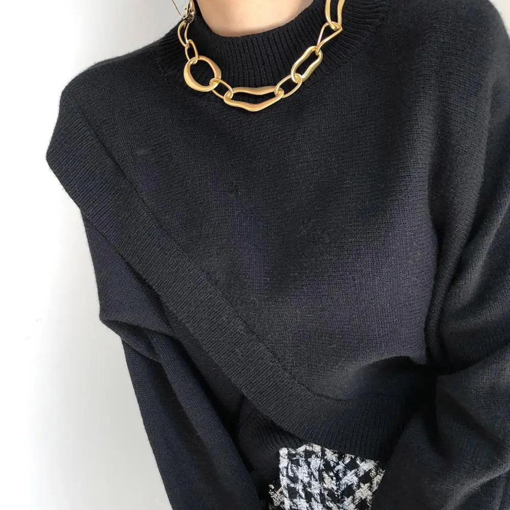 lDUKGwDYrДолго искали Chic Cross Knitted Sweater Women Korean Autumn Winter New Half Turtlenck Loose Woman Tops Sweaters Sexy Irregular Split Black, но не могли найти? Предоставляем вашему вниманию Chic Cross Knitted Sweater Women Korean Autumn Winter New Half Turtlenck Loose Woman Tops Sweaters Sexy Irregular Split Black по лучшей цене на рынке!