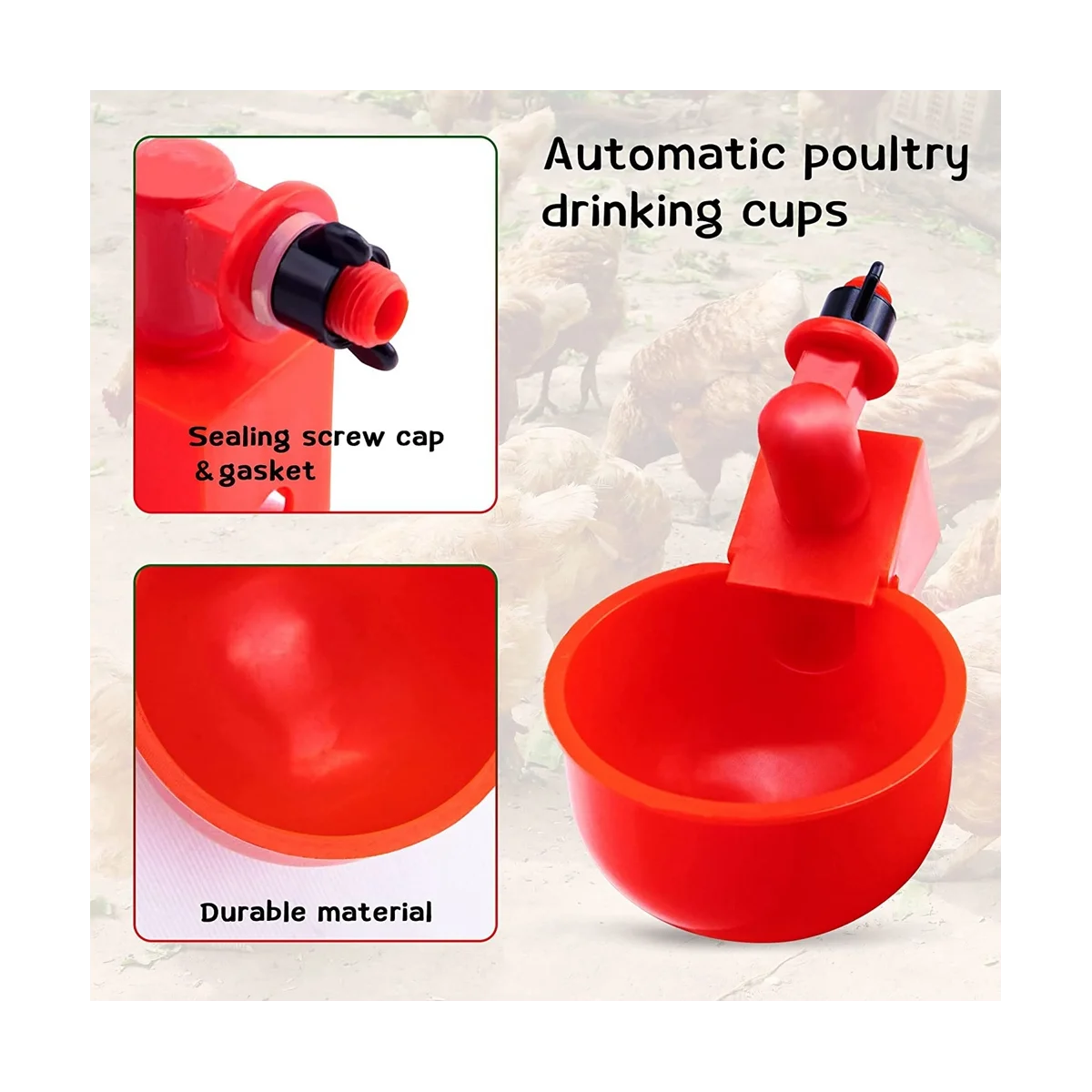 IDTwfUklckHere you can buy Chicken Feeder Cup for Chicken Duck Turkey Rabbit,3/8 Inch Thread Automatic Filling,Solution for Poultry Watering with free delivery to your post office.