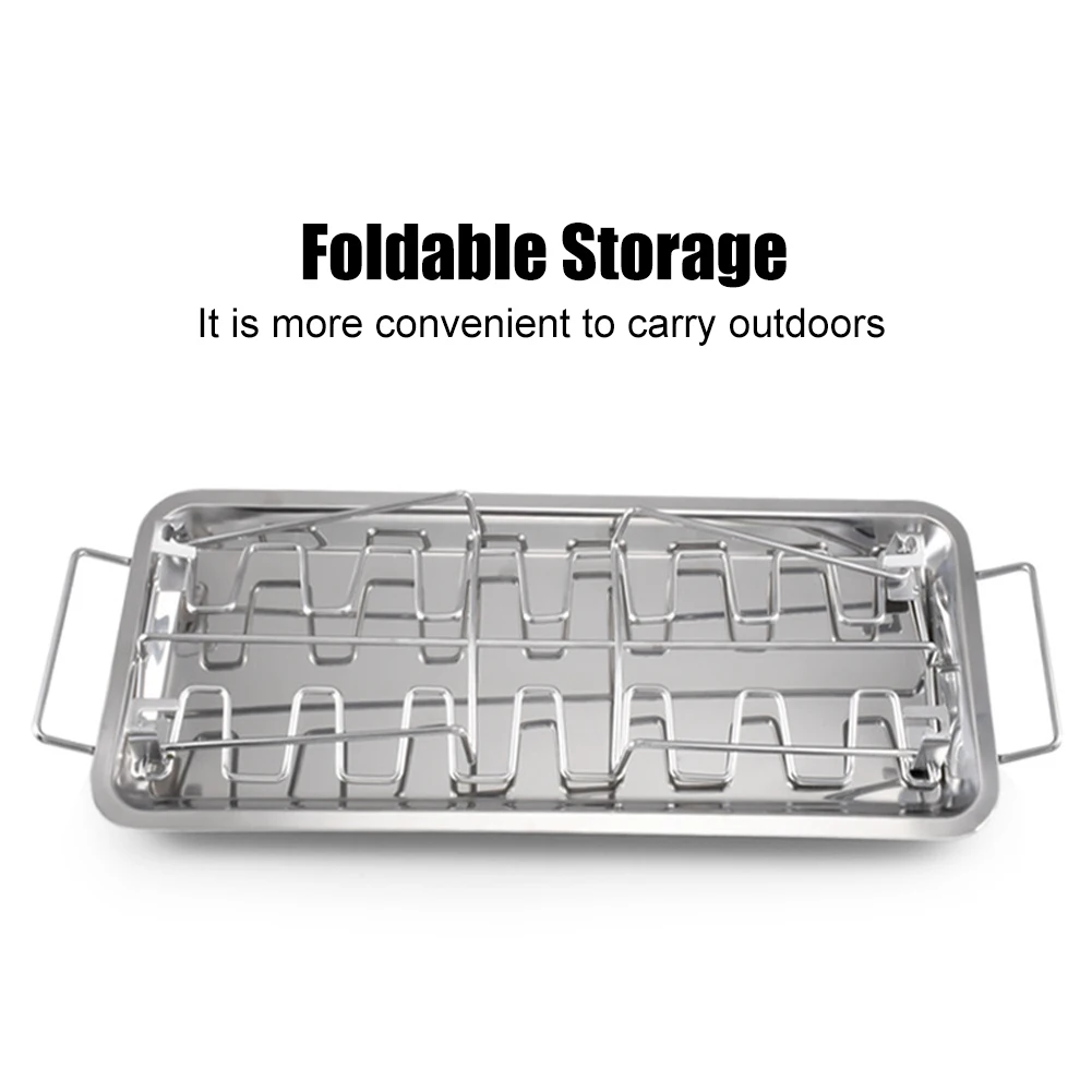 Chicken Leg Rack For Grill With Drip Tray 430 Stainless Steel Folding Drumstick Rack 14 Slots Chicken Wing Rack Holder For BBQ - Купить с бесплатной доставкой