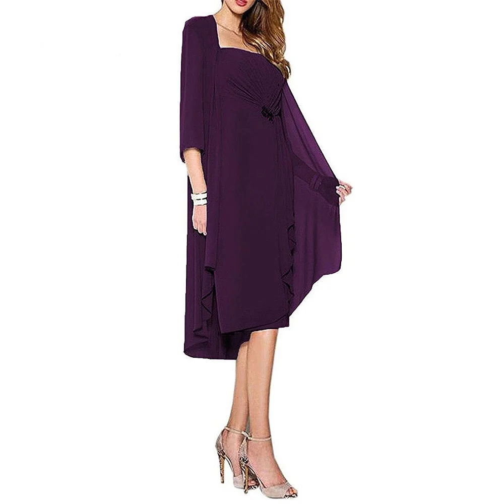 "Chiffon Knee Length Mother of The Bride Dresses with Jacket Short Evening Formal Gowns Elegant Mother Dress 2019" * Buy Now Just For 66$