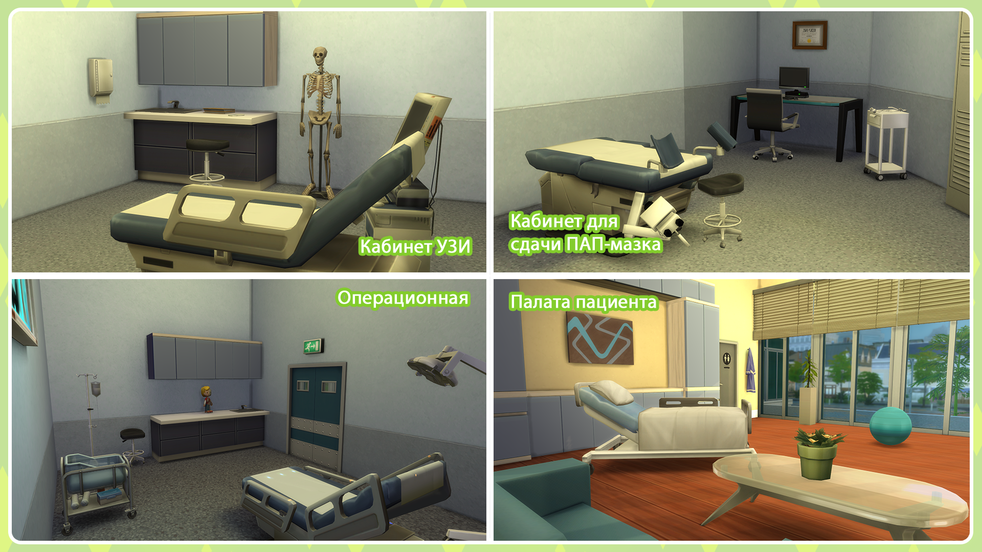 Если вы хотите сами построить больницу, вам так же сначала нужно попасть на этот участок и так же ввести код bb.enablefreebuild (возможность строить на общественных участках) и bb.showhiddenobjects (отображение скрытых объектов). После для корректной работы мода необходимо расположить на участке следующие объекты: