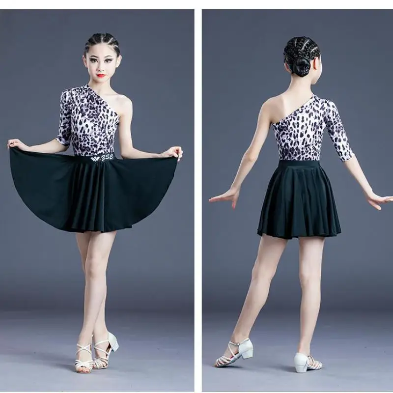 "Children's Dance Practice Clothe Tops+Skirt Suits Latin Dance Clothes Summer Split Leopard Print New Female Performance Costumes" * Buy Now Just For 25$