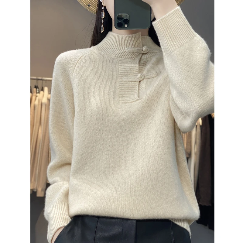 «Chinese Button Up Collar Cashmere Sweater Women's Autumn and Winter Thickened Loose Sweater Half Open Collar Wool Pu» по лучшей цене на рынке! Всего за 46$ (4370рублей)