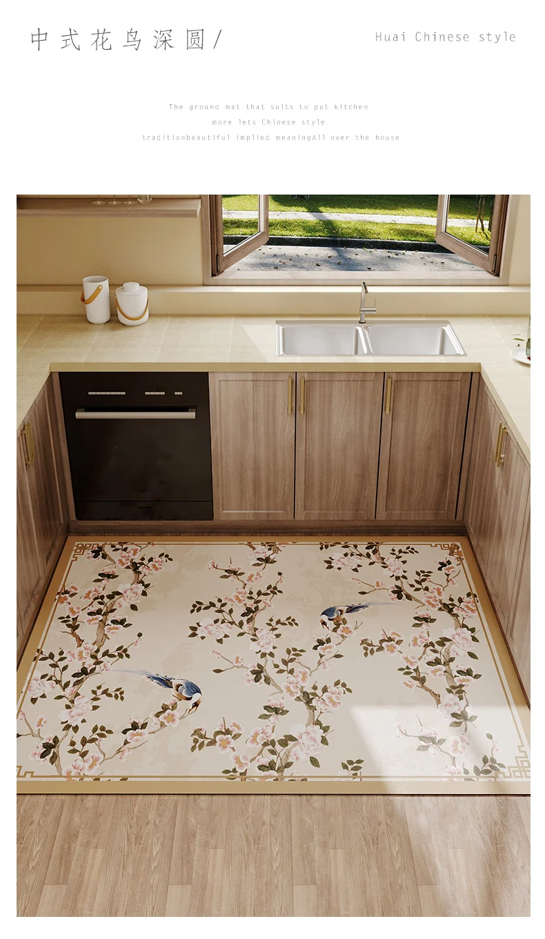 "Chinese Style Carpet Kitchen Prevents Slippery Prevent Oil Waterproof Scrub Flower Rectangle Floor Mat" * Buy Now Just For 48$