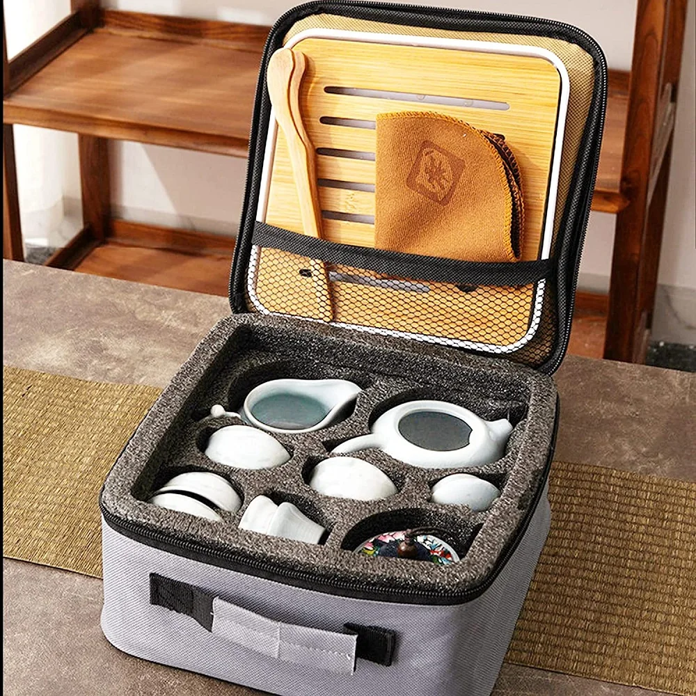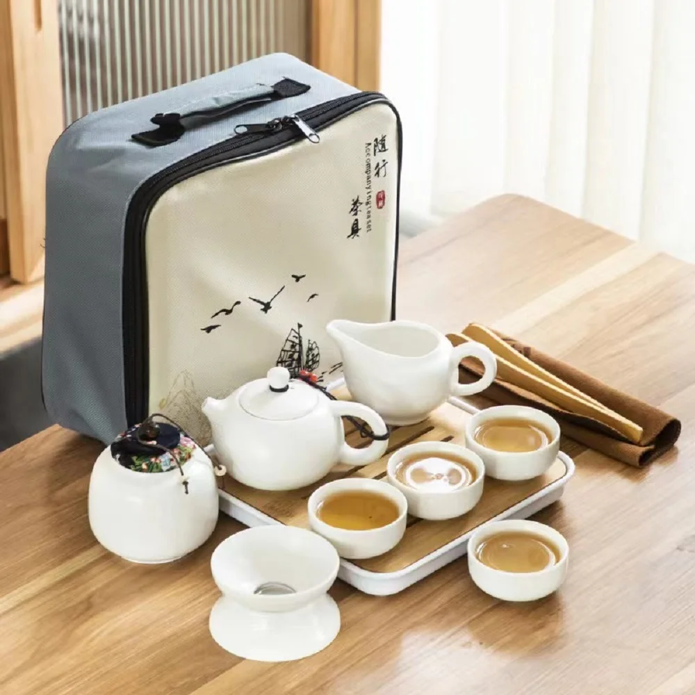 Chinese Tea Set Kungfu Tea Pot Cup Set with Bamboo Tea Tray Tea Canister Infuser Travel Portable Tea Set Suitable for Office - Купить с бесплатной доставкой