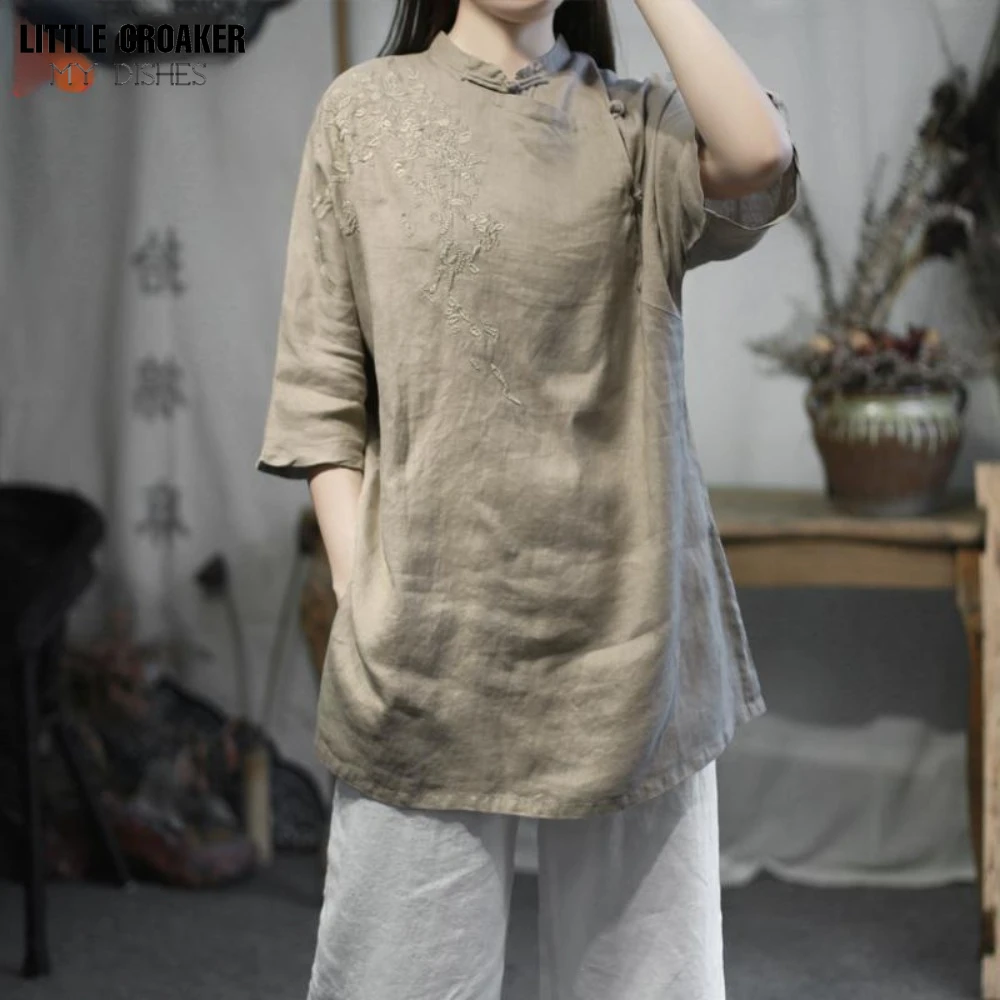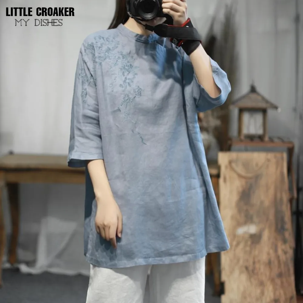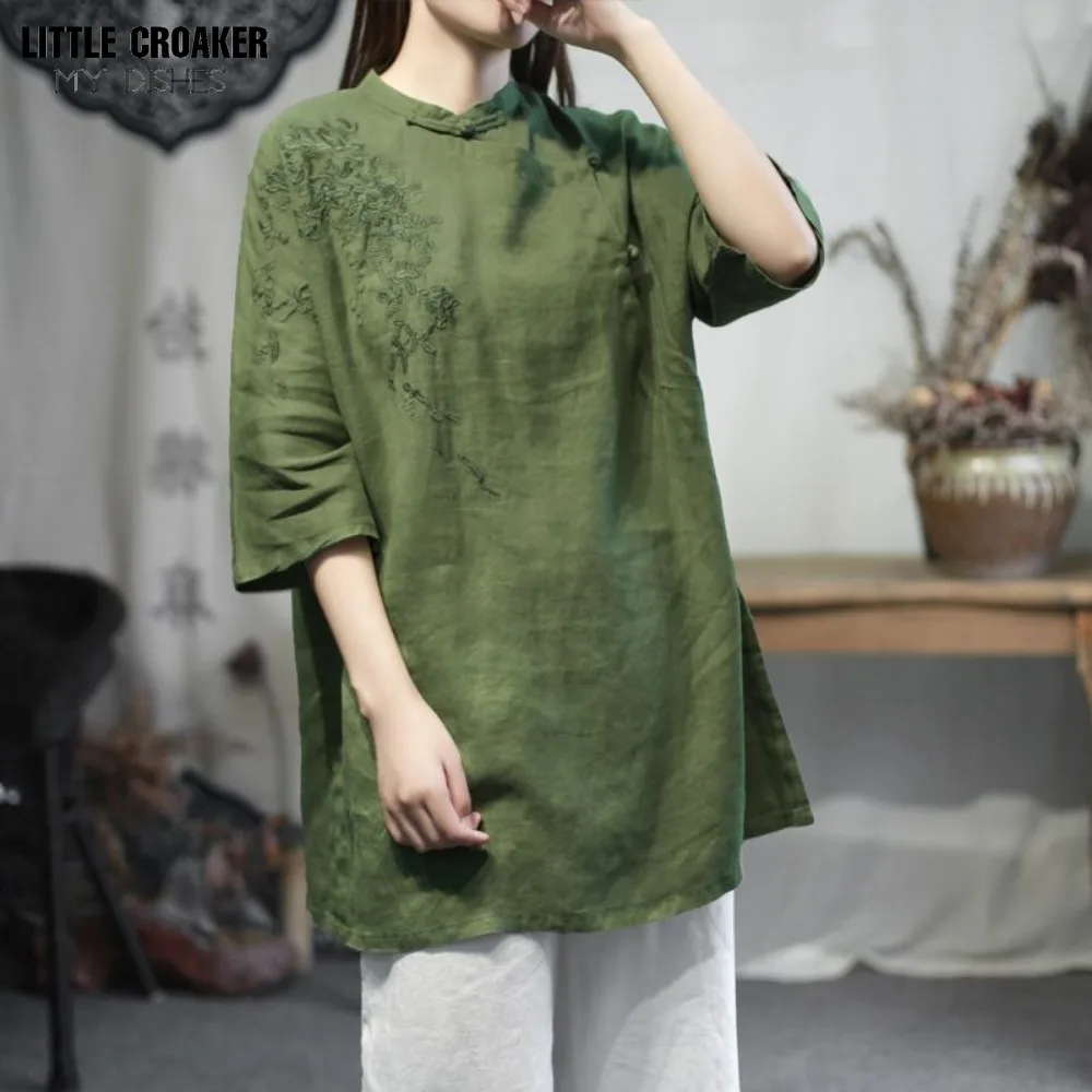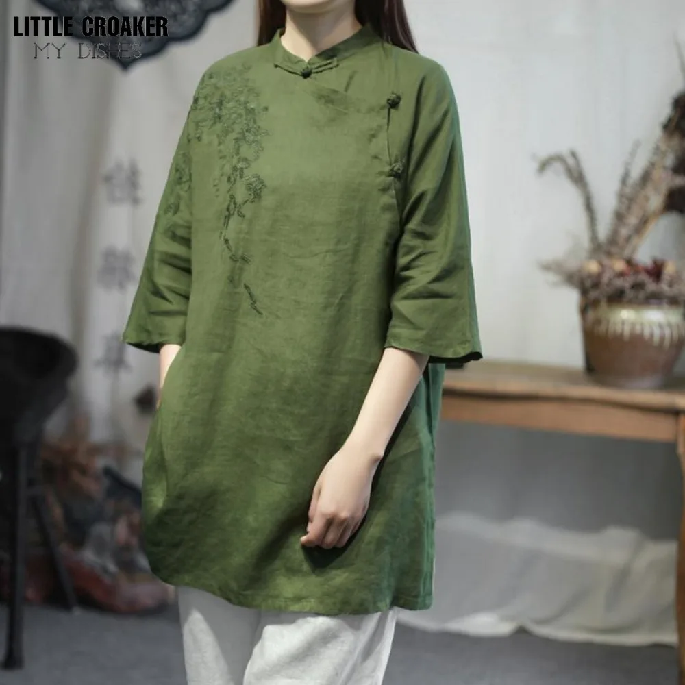 Chinoiserie Buddhist Patchwork Split Top Zen Blouse Tea Suit with Diagonal Placket Button Middle Length Tea Artist's Lay Clothes - Купить с бесплатной доставкой