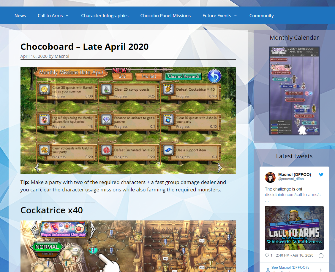 The Chocobo Panel Guide has a new home!MacnolVisit http://dissidiainfo.com/chocobo-panel-missions/ to check it out!