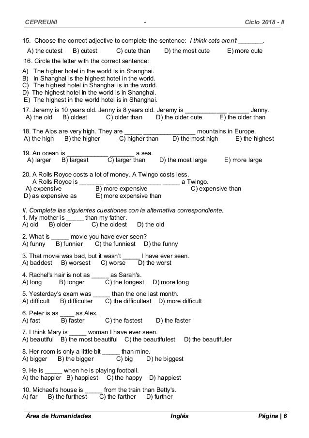 Read and choose the correct superlative Young : a) younger ...