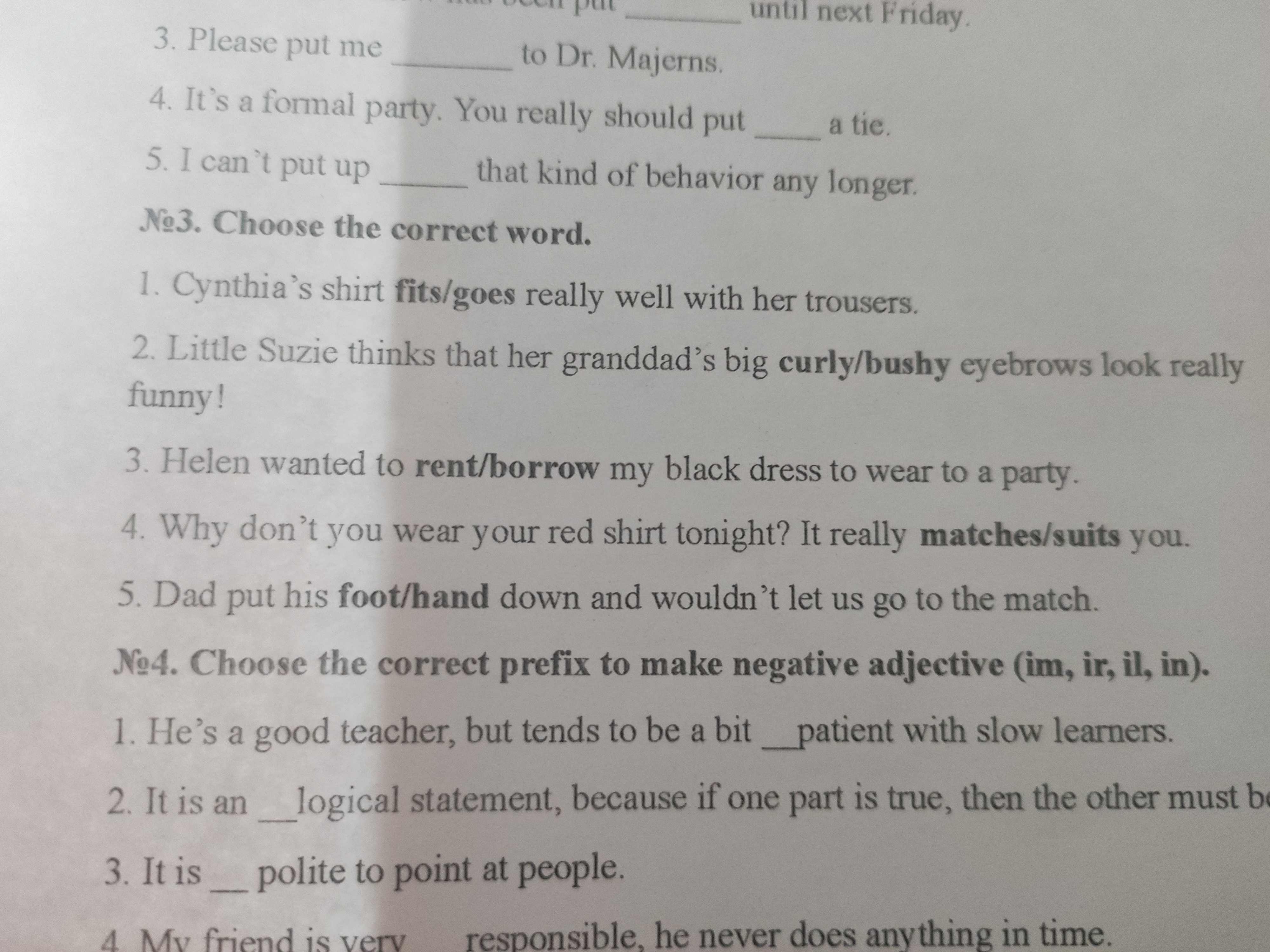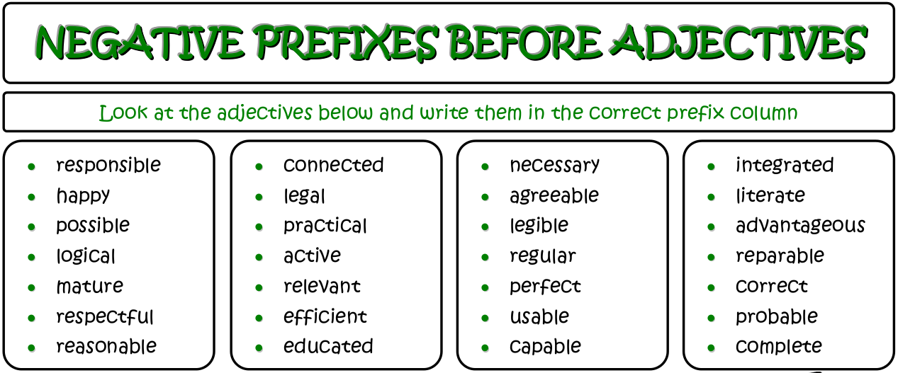 Choose the adjectives with correct prefixes