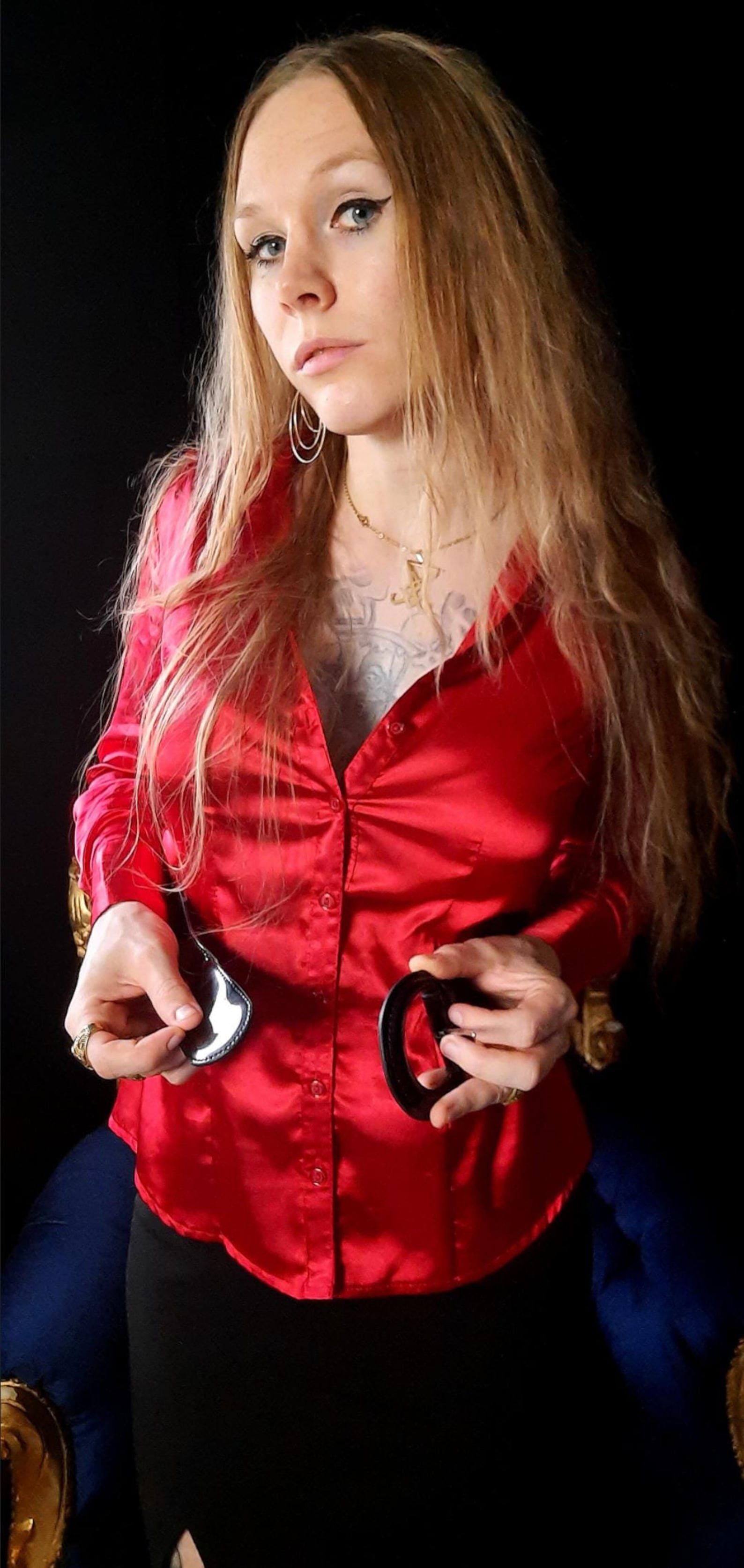 Christina Carter In A Red Satin Blouse