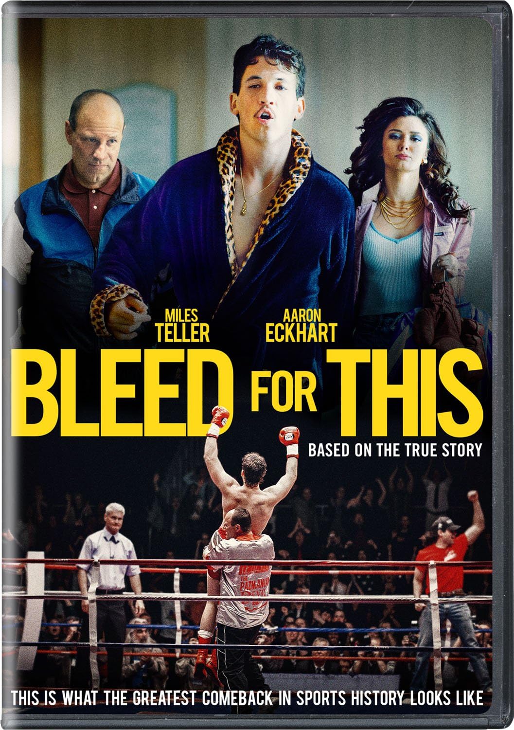 Bleed for This, 2016 . Written and Directed by Ben Younger . Starring Miles Teller, Aaron Eckhart, Christine Evangelista, Ciaran Hinds, Amanda Clayton, Ted Levine, and Katey Sagal .