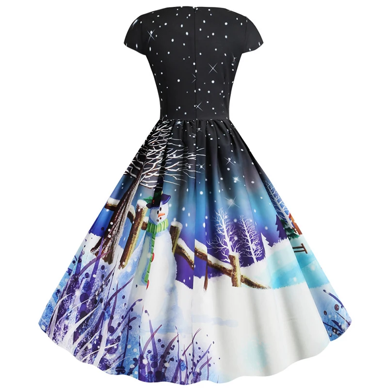 «Christmas A Line Dresses Women Element Printing Guofeng Retro Short Sleeve V Neck Female Clothing Mid Waist Hedging Midi Dress» по лучшей цене на рынке! Всего за 10$ (950рублей)