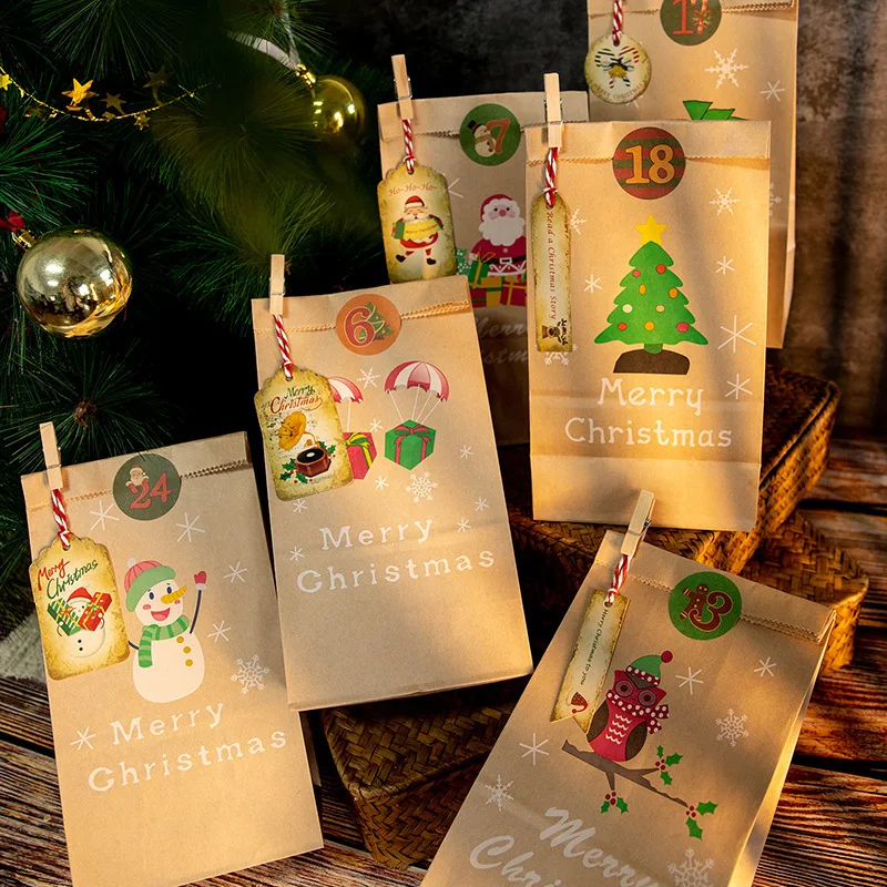 «Christmas Advent Calendar Bags Set 24 Days Burlap Advent Calendar Gift Kraft Paper Bags With Clips DIY Christmas Navidad Decor» по лучшей цене на рынке! Всего за 11$ (1045рублей)