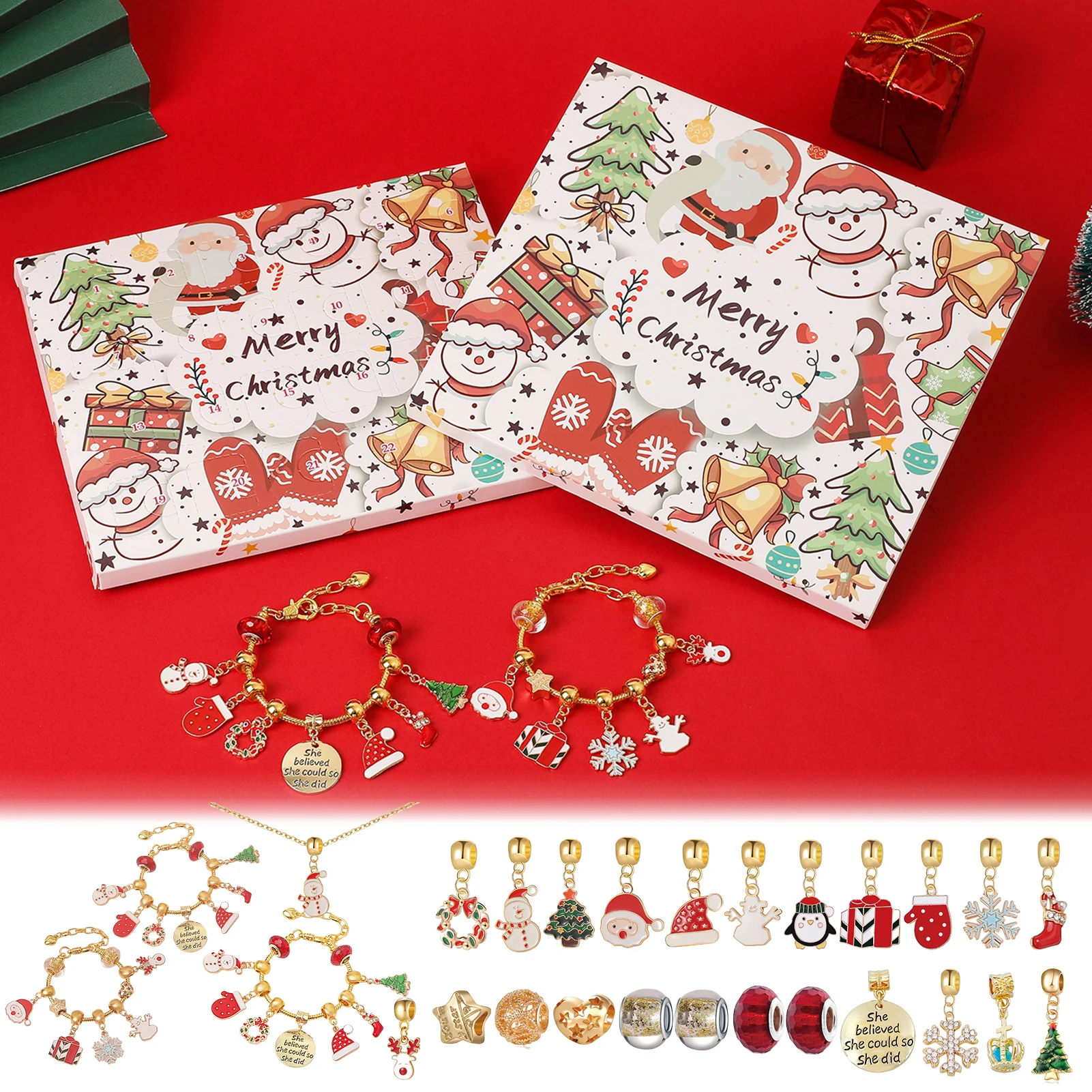 «Christmas Advent Calendar Kit Christmas Charm Bracelet Making Kit 24-Days Christmas Countdown Calendar Exquisite Jewelry Gifts» по лучшей цене на рынке! Всего за 7$ (665рублей)