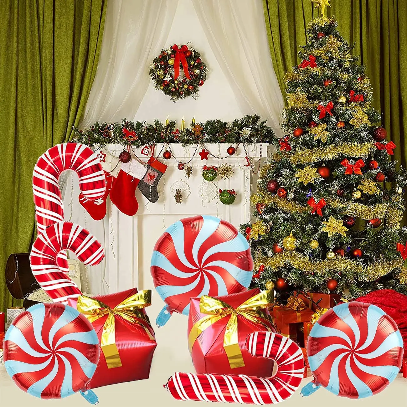 «Christmas Balloon Arch Garland Red Green Gift Box Candy Cane Balloons Cone Explosion Star Foil Balloons New Year Christma Decor» по лучшей цене на рынке! Всего за 8$ (760рублей)