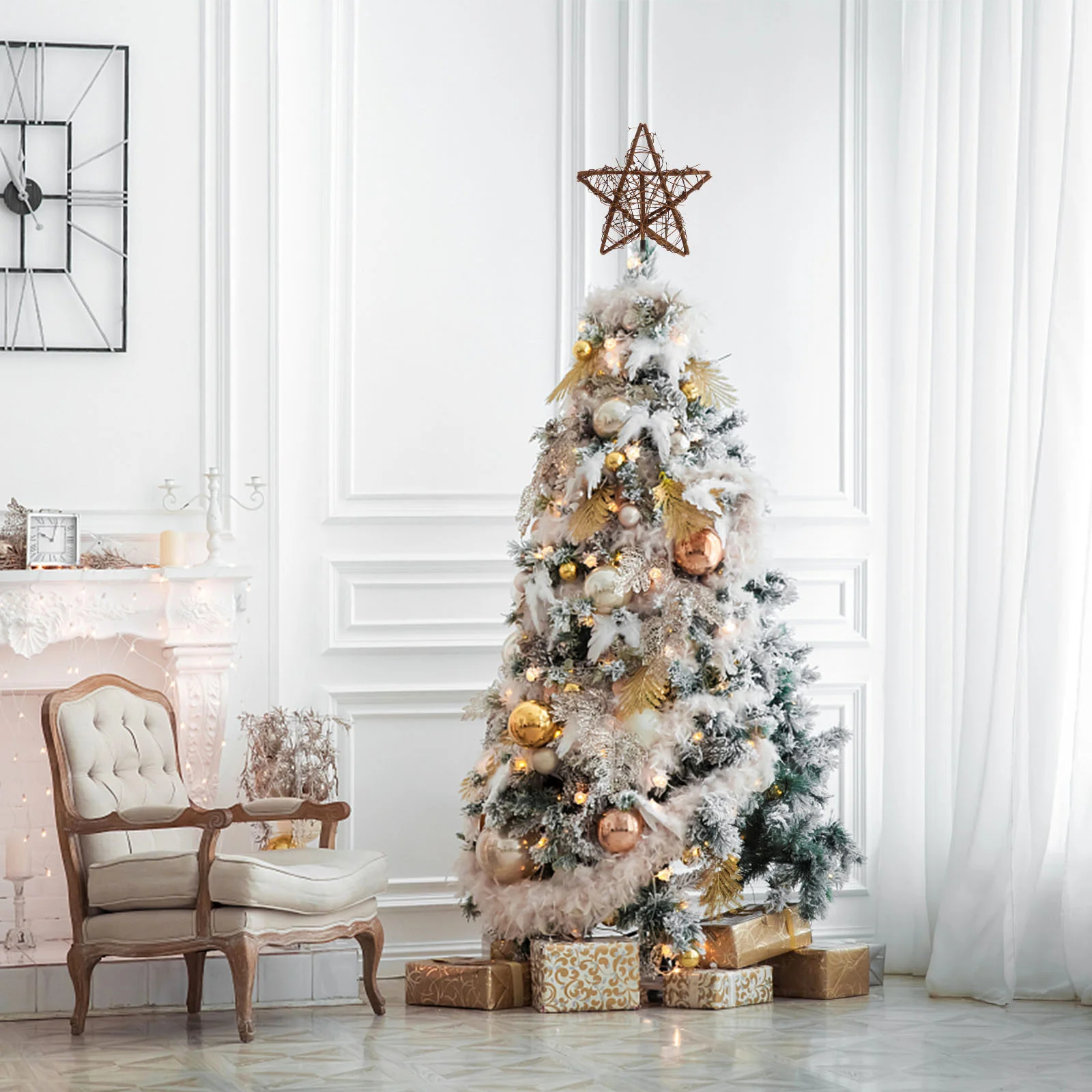 ITVmJSRlYHere you can buy Christmas Rattan Star Treetop with Spring Support Xmas Tree Topper Decoration Simulated wreath for home decor with free delivery to your post office.