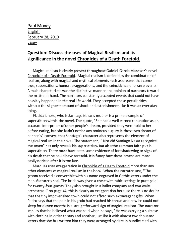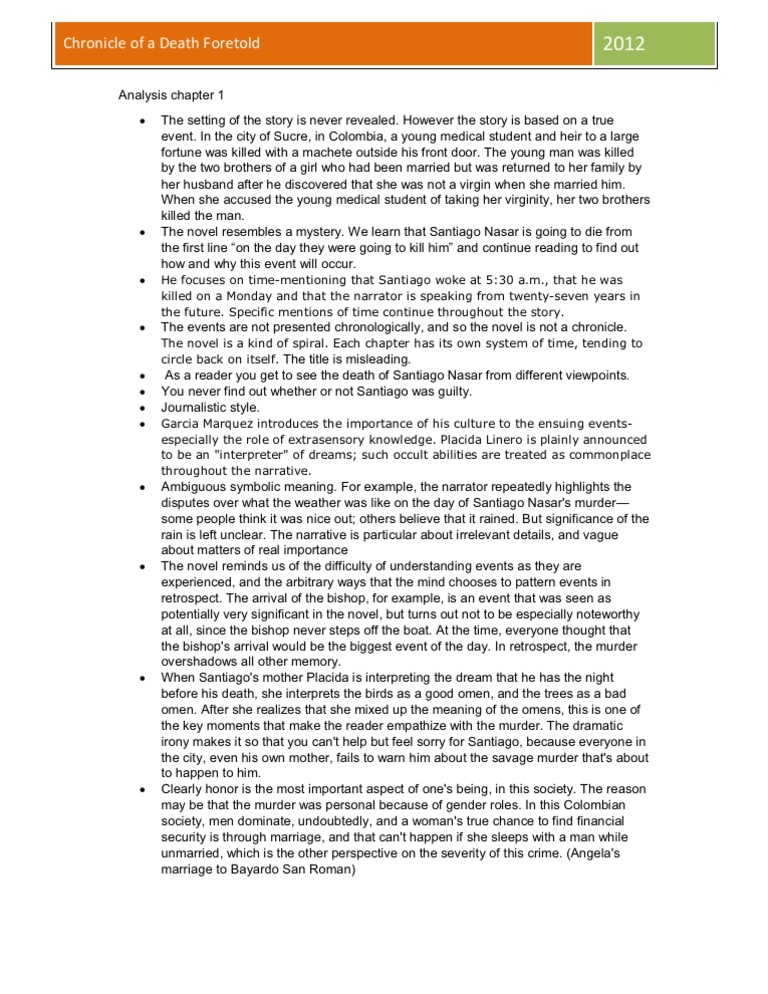 Chronicle Of A Death Foretold Essay - 906 Words | Bartleby
