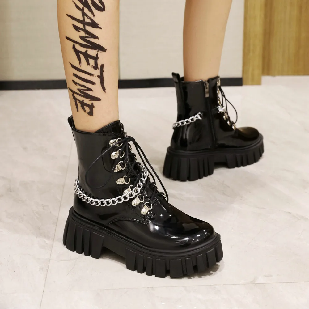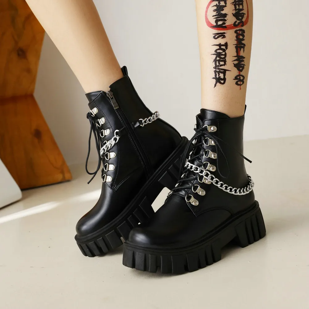 «Chunky Platform Boots Goth Womens Strappy Punk Lace Up Zip Autumn Shoes with Chain Block Heel Combat Motorcycle Ankle Booties» по лучшей цене на рынке! Всего за 37$ (3515рублей)