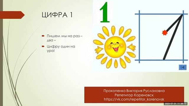 Цифра 1 видеоурок 1 класс