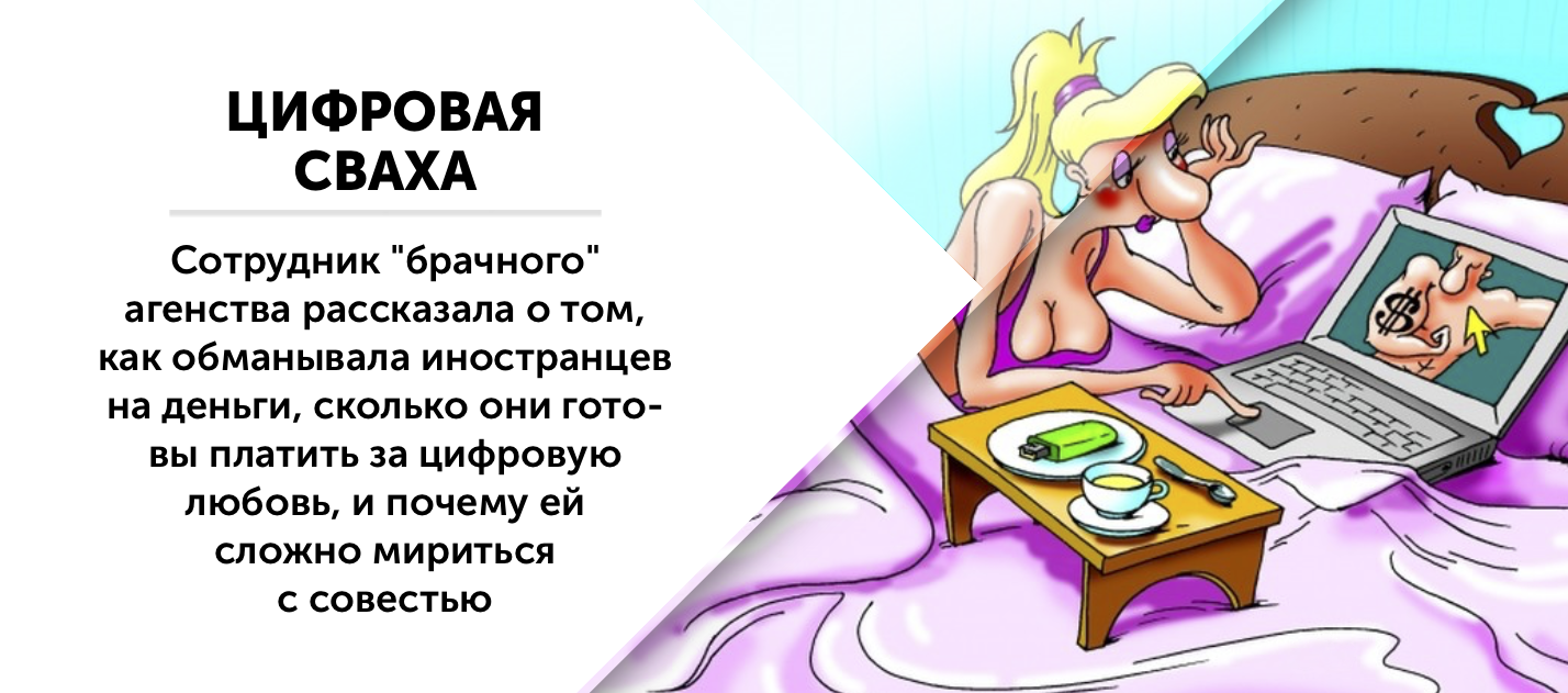 Для меня эта история стала последней каплей. Получив свою первую зарплату, я ушла и не жалею. Но на мое место обязательно придет кто-то другой, ведь это вечный круговорот брачного обмана. На общих тренингах менторы окутывали каждого новенького одеялом из лести. Говорили, что мы классные и перспективные ребята, и по их примеру обязательно научимся зарабатывать миллионы на глупых иностранцах. Что же, они-то, наверное, и зарабатывают.
