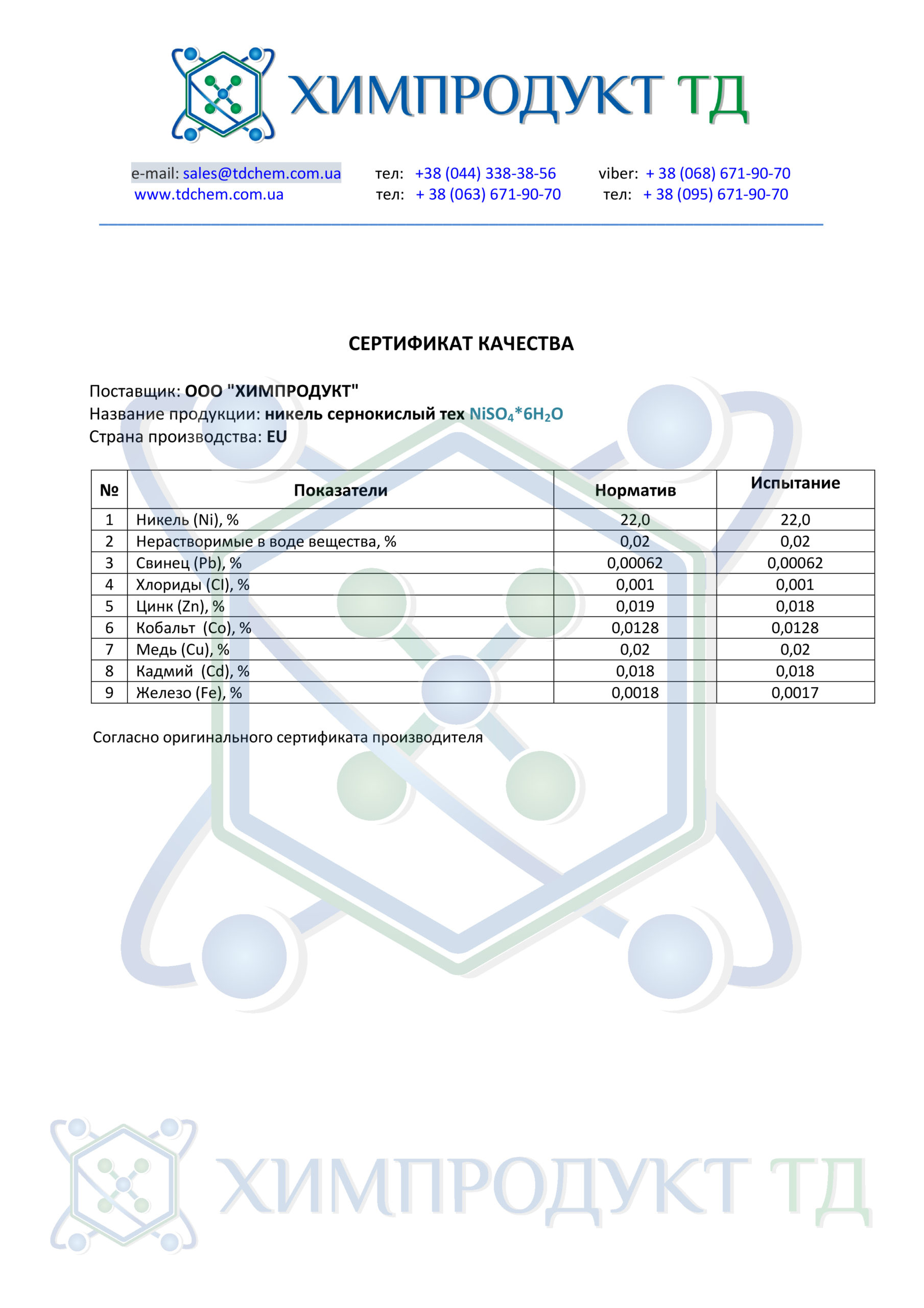 кобальт гидроксид никель сульфат . кобальт оксид окись никеля . кобальт ацетат кобальт нитрат . кобальт сульфат молибден оксид аммоний молибдат (АМК) цинк нитрат цинк сульфат . олово хлорид олово сульфат . нитраты и ацетаты натрия, свинца . Дата последнего изменения: 25 .11 .2013 .