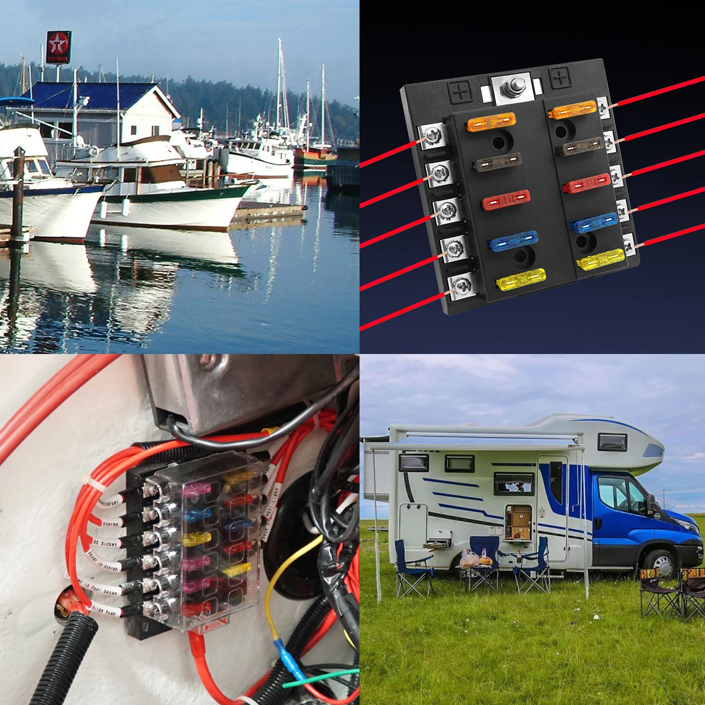 "Circuit Reset Fuse Block with LED Indicator 12-32V DC Fuse Box Holder with Plastic Cover for RV Camper Boat Marine Car" * Buy Now Just For 27$