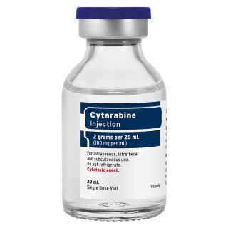 Цитарабин - противоопухолевый препарат с действующим веществом цитарабин.Фармакологические свойстваЦитарабин относится к инсектицидам и иммуномодулирующим средствам для лечения канцерогенных опухолей. Является аналогом нуклеозида пиримидинового ряда. Обладает свойством подавлять дезоксирибонуклеииновую кислоту. Механизм цитотоксического действия обусловлен тем, что цитарабин способен подавлять синтезирование дезоксицитидина во время одной из фаз митоза.Благодаря своему цитотоксическому действию, у цитарабина имеется способность разрушать клетки в тканях, которые пролиферируются.Эффект применения дозозависим.При пероральном применении – неэффективен.Показания к применениюЦитарабин применяют при лимфобластном и миелобластном лейкозах, хроническом миелолейкозе, эритролейкозе, лимфогранулематозе, неходжкинских лимфомах, синдроме дисплазии костного мозга.Высокодозная терапия цитарабином применяется в индукционных и консолидационных программах при первичных острых лимфобластных и миелобластных лейкозах; при вторичных лейкозах, возникших после предшествующей...